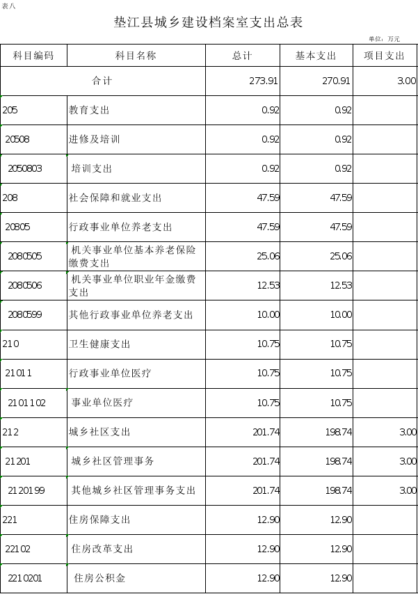 8.垫江县城乡建设档案室支出总表