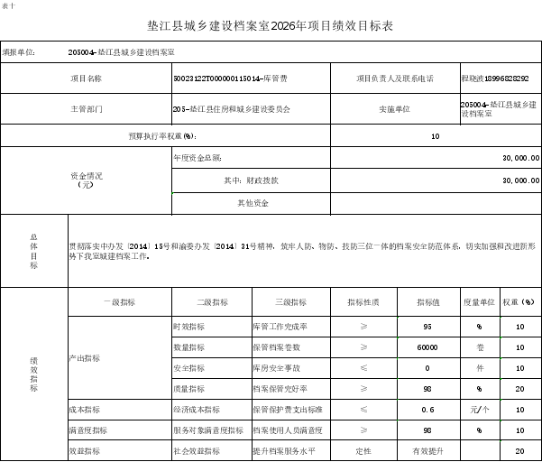 10.垫江县城乡建设档案室2026年项目绩效目标表