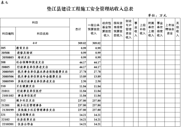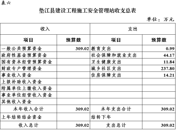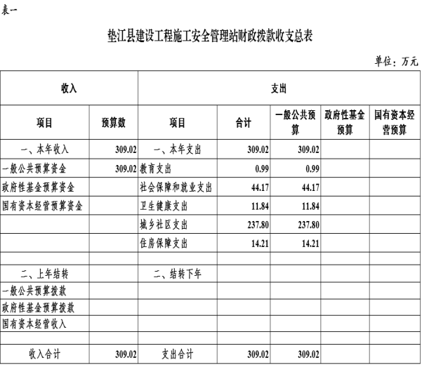 附表:1.垫江县建设工程施工安全管理站财政拨款收支总表