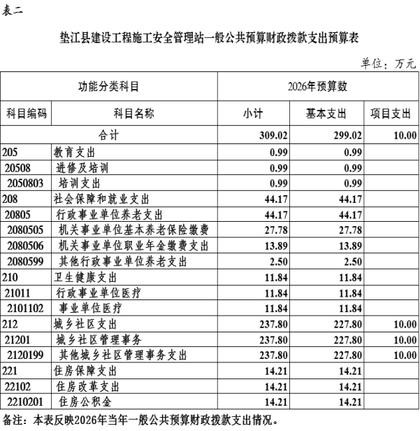 2.垫江县建设工程施工安全管理站一般公共预算财政拨款支出预算表