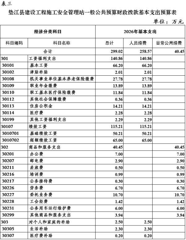 3.垫江县建设工程施工安全管理站一般公共预算财政拨款基本支出预算表