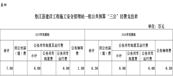 4.垫江县建设工程施工安全管理站一般公共预算“三公”经费支出表
