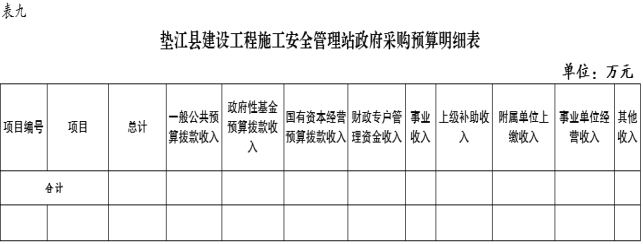 9.垫江县建设工程施工安全管理站政府采购明细表