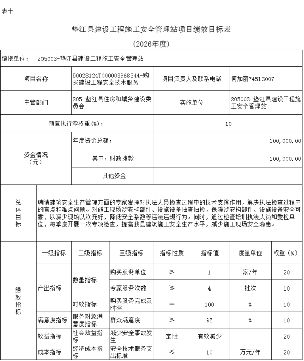 10.垫江县建设工程施工安全管理站2026年项目绩效目标表