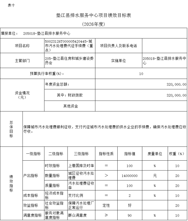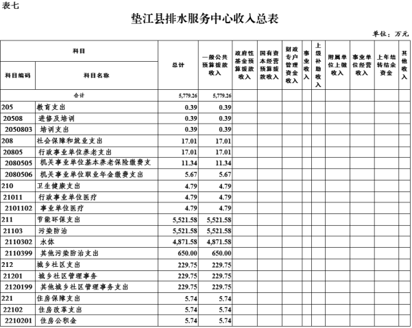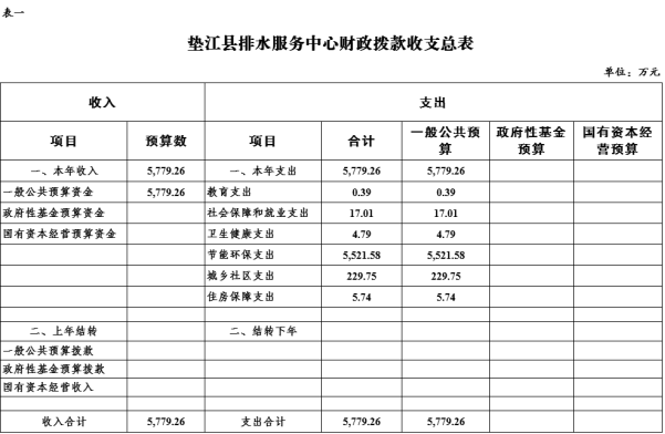 附表:1.垫江县排水服务中心财政拨款收支总表