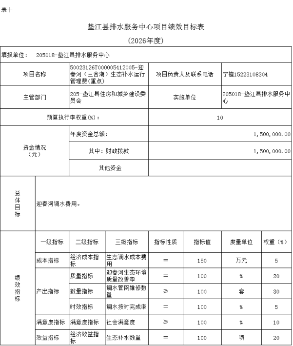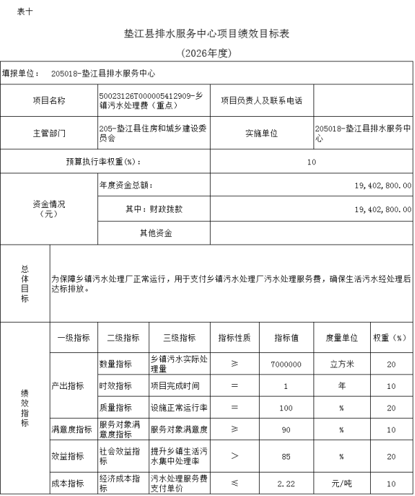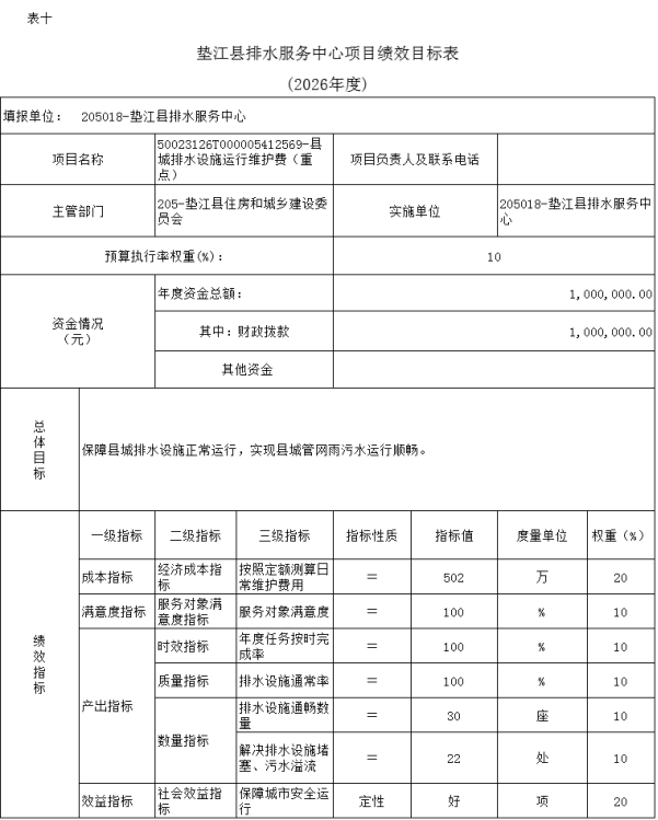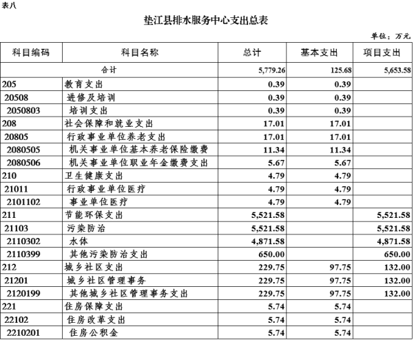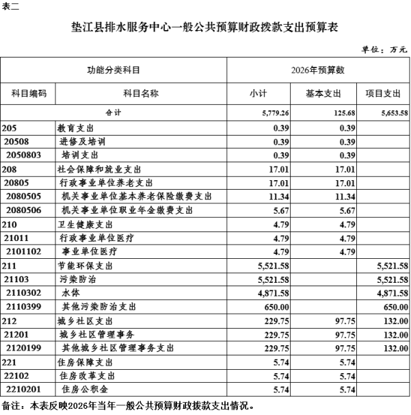 2.垫江县排水服务中心一般公共预算财政拨款支出预算表