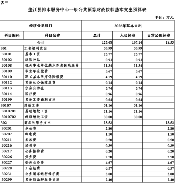 3.垫江县排水服务中心一般公共预算财政拨款基本支出预算表