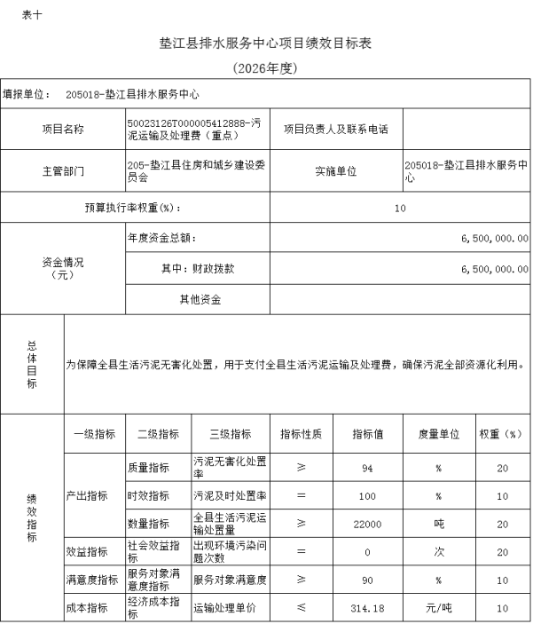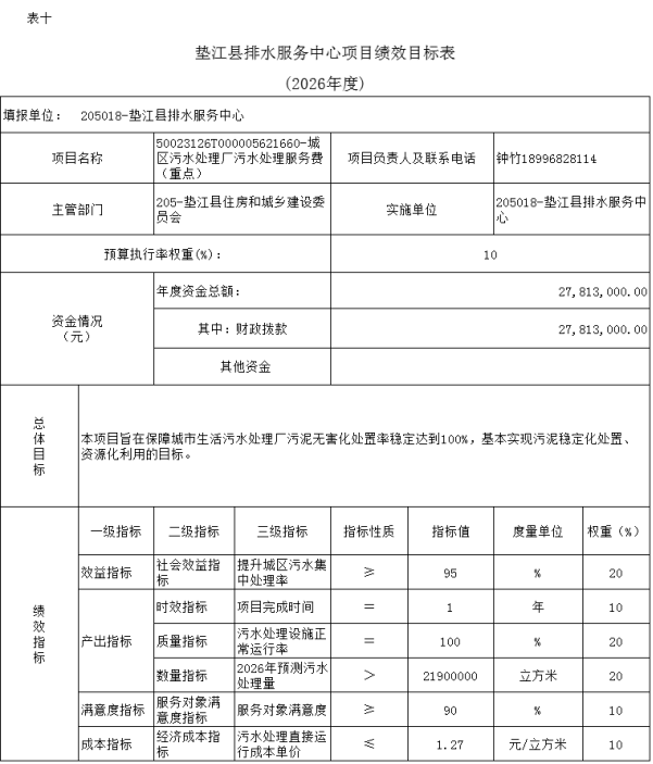 2026年一般公共预算财政拨款收入5779.26万元,一般公共预算财政拨款支出5779.26万元,比2025年增加3060.25万元。其中:基本支出125.68万元,比2025年增加9.37万元,主要原因是人员工资及社会保险费增加,主要用于保障在职人员工资福利及社会保险缴费、离休人员离休费、退休人员补助等,保障部门正常运转的各项商品服务支出;项目支出5653.58万元,比2025年增加3050.88万元,主要原因是城区污水处理厂污水处理服务费、城市污水处理费代征手续费,主要用于迎春河(三合湖)生态补水运行管理费、县城排水设施运行维护费、污泥运输及处理费、乡镇污水处理费、城市污水处理费代征手续费、城区污水处理厂污水处理服务费等重点工作。