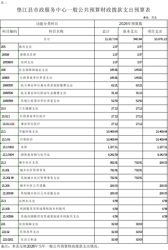 2.垫江县市政服务中心一般公共预算财政拨款支出预算表