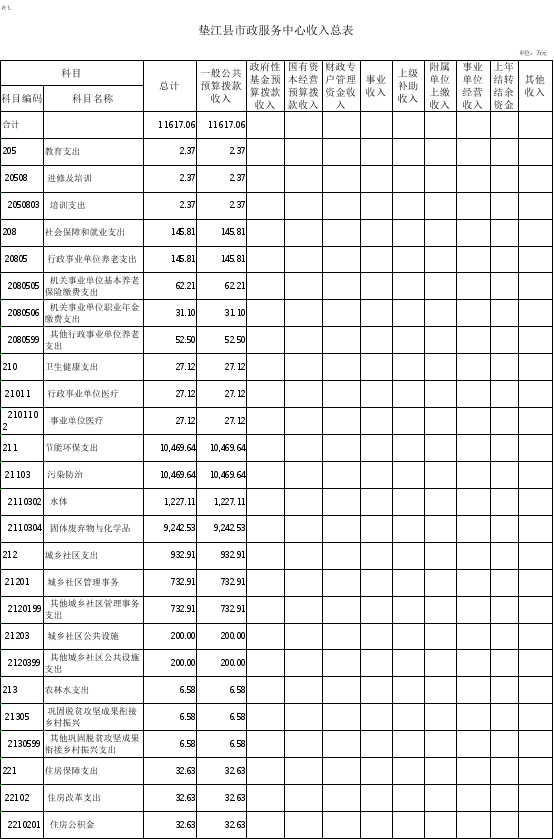 7.垫江县市政服务中心收入总表