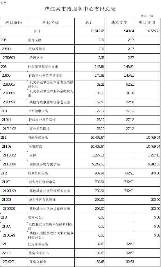 8.垫江县市政服务中心支出总表
