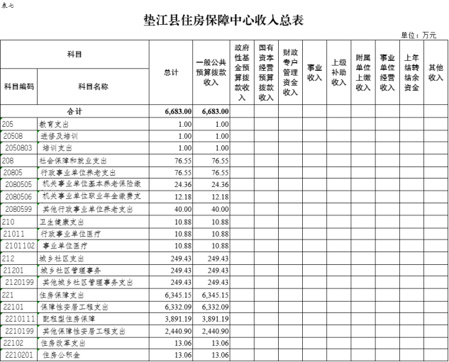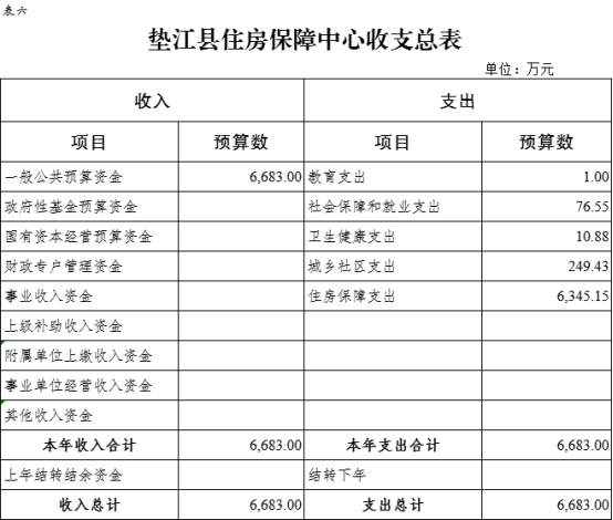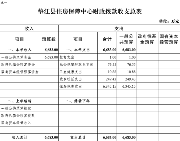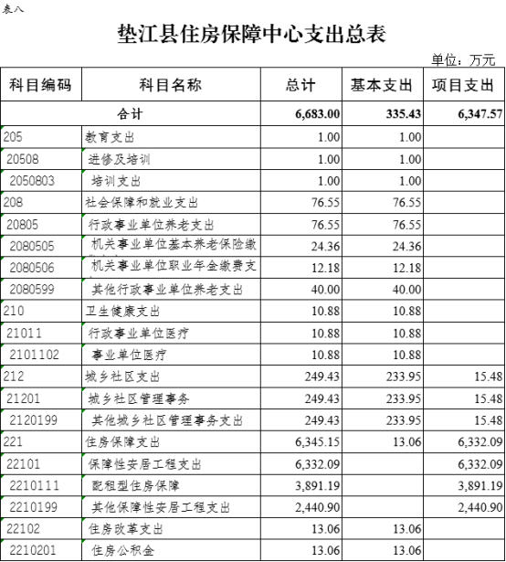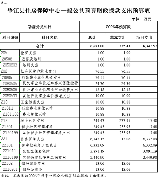 2.垫江县住房保障中心一般公共预算财政拨款支出预算表