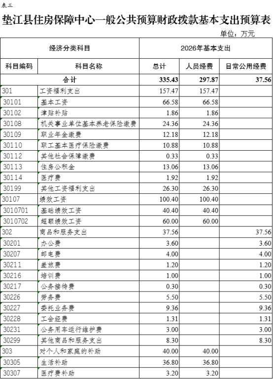 3.垫江县住房保障中心一般公共预算财政拨款基本支出预算表