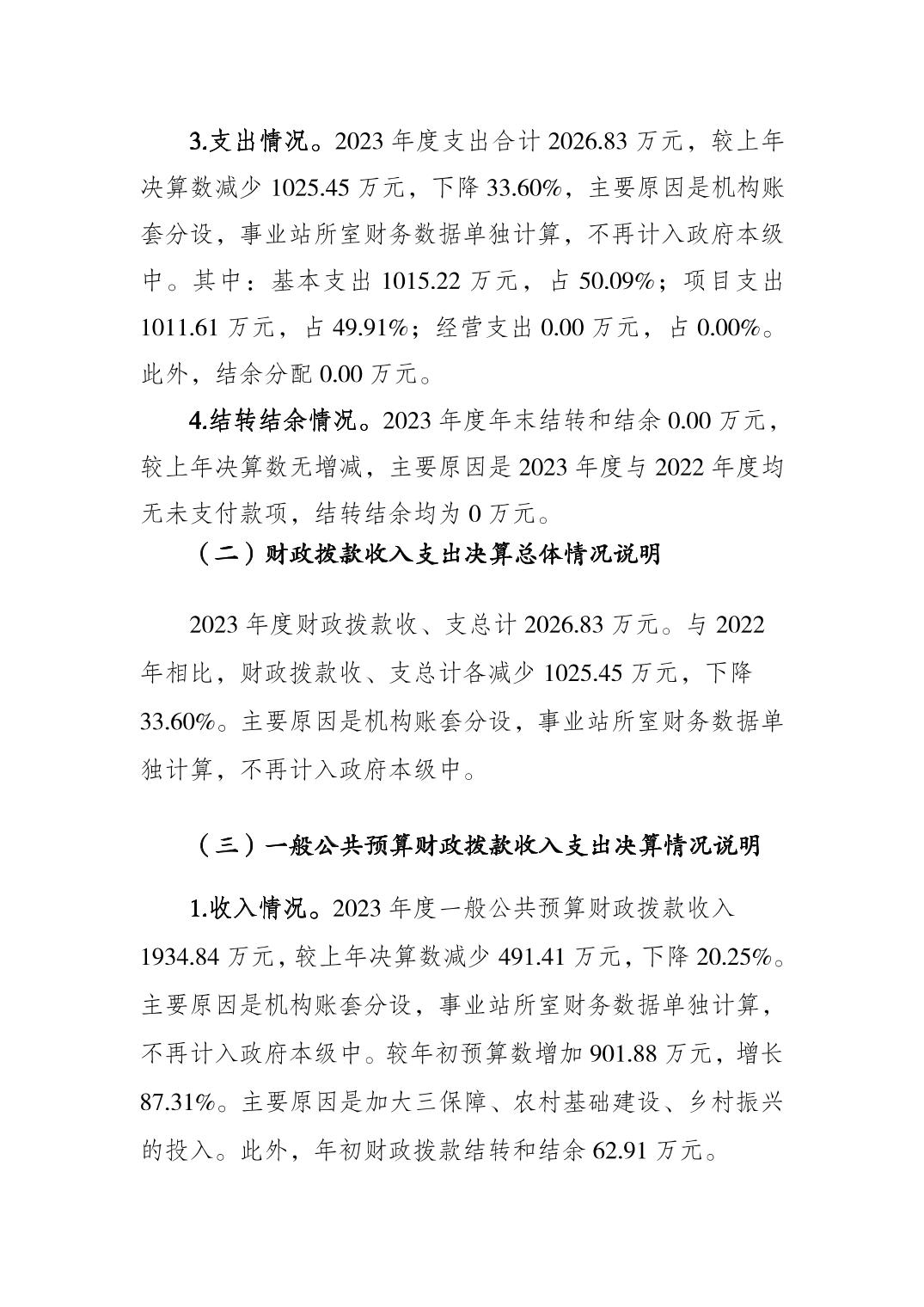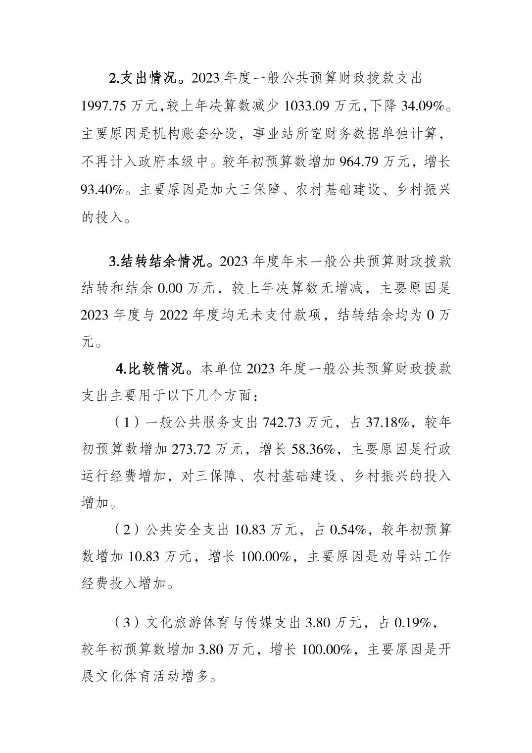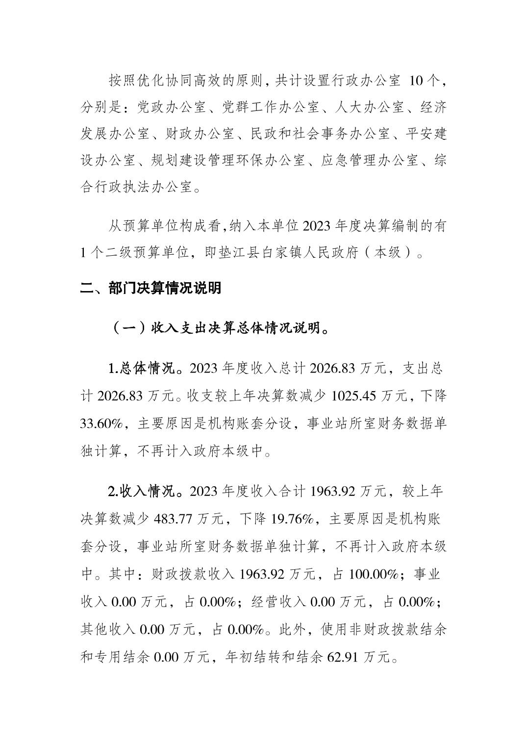 垫江县白家镇人民政府(本级)2023 年度决算公开说明