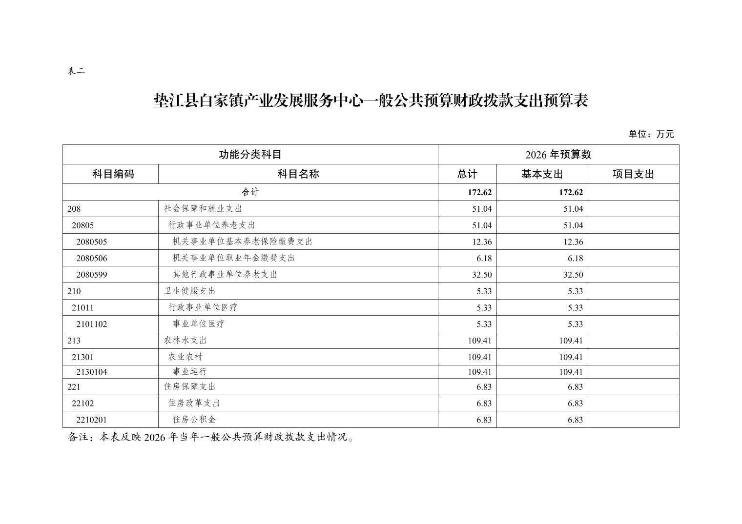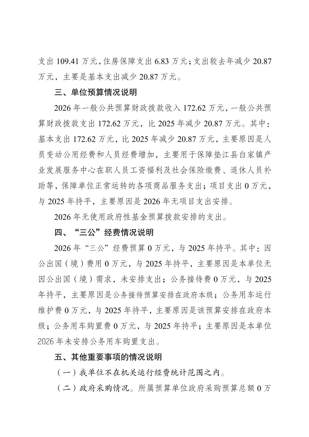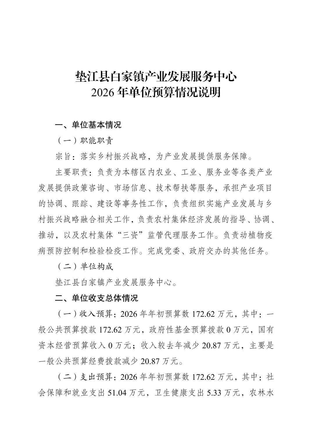 垫江县白家镇产业发展服务中心2026年单位预算情况说明