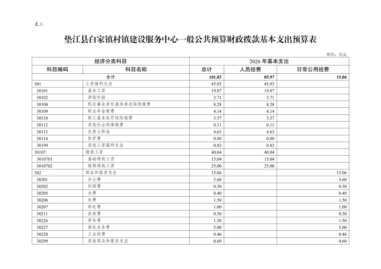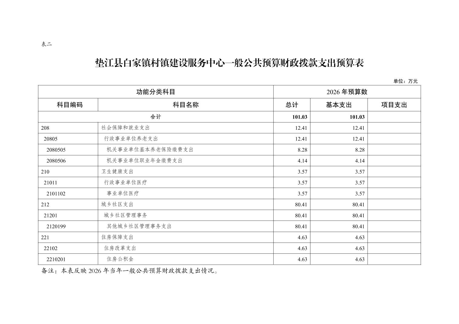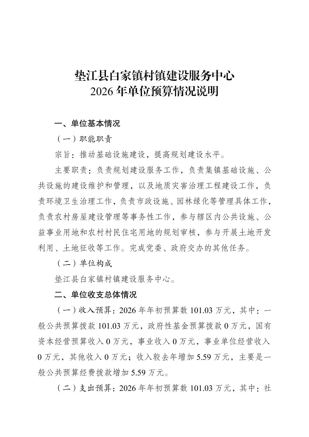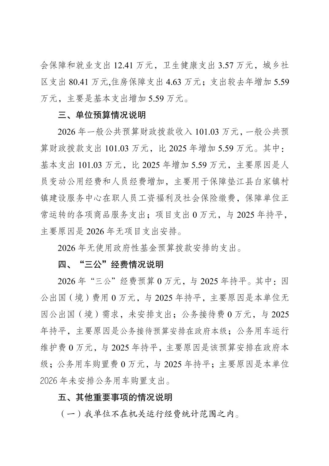 垫江县白家镇村镇建设服务中心2026年单位预算情况说明