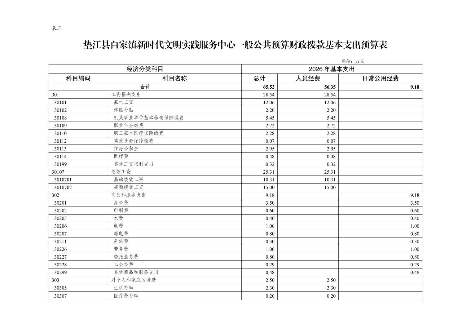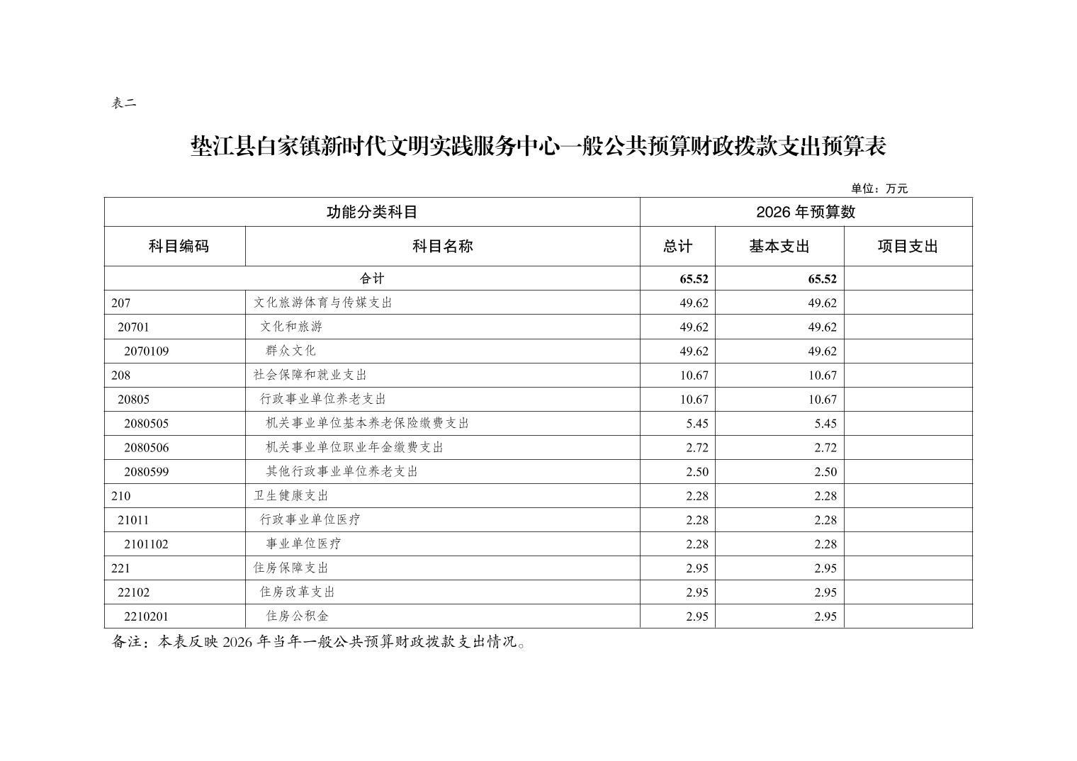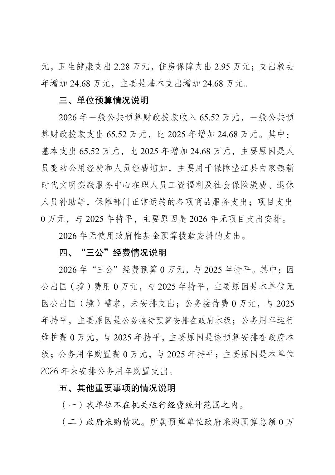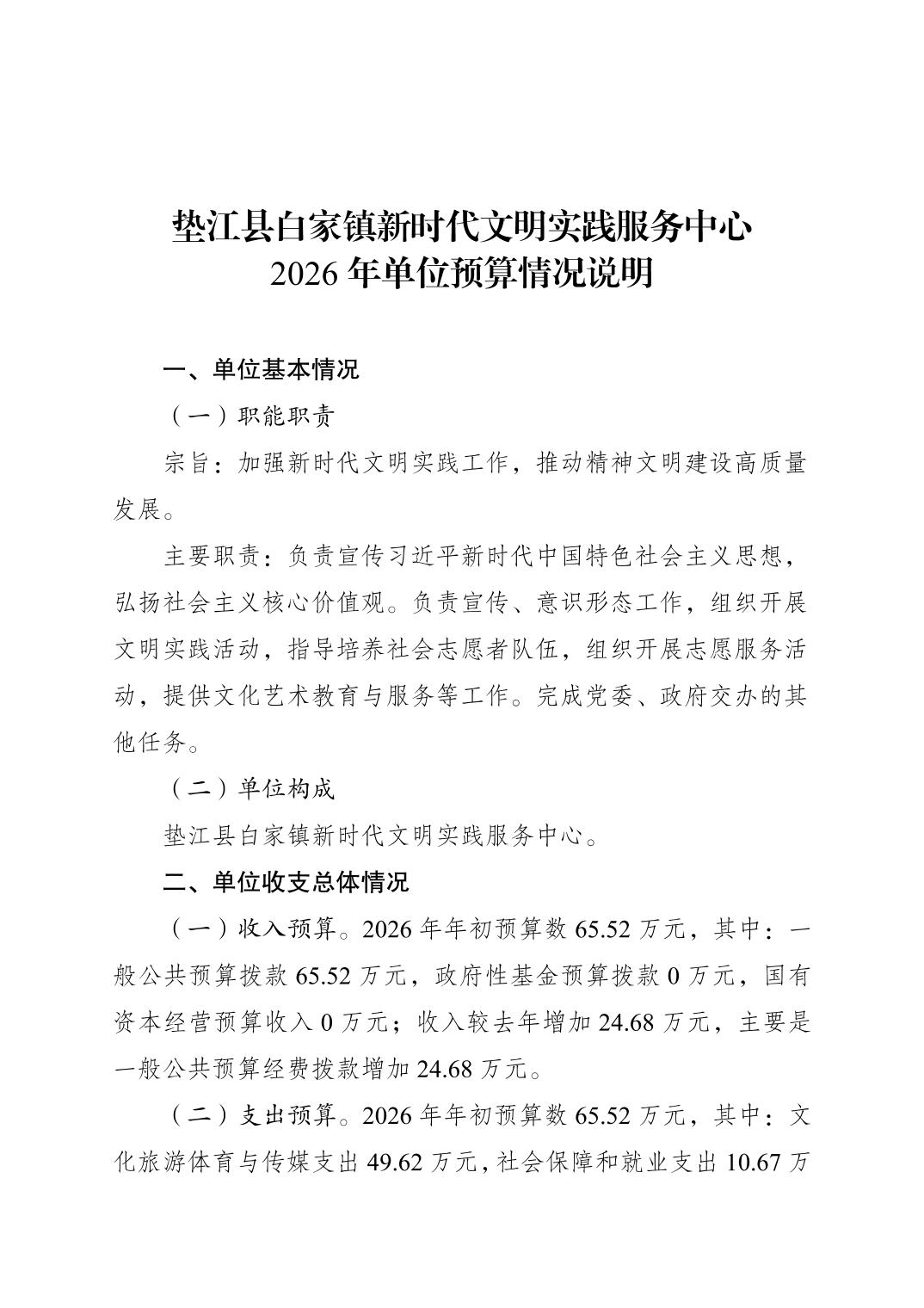 垫江县白家镇新时代文明实践服务中心2026年单位预算情况说明
