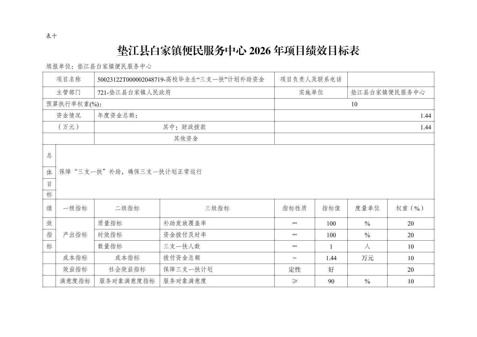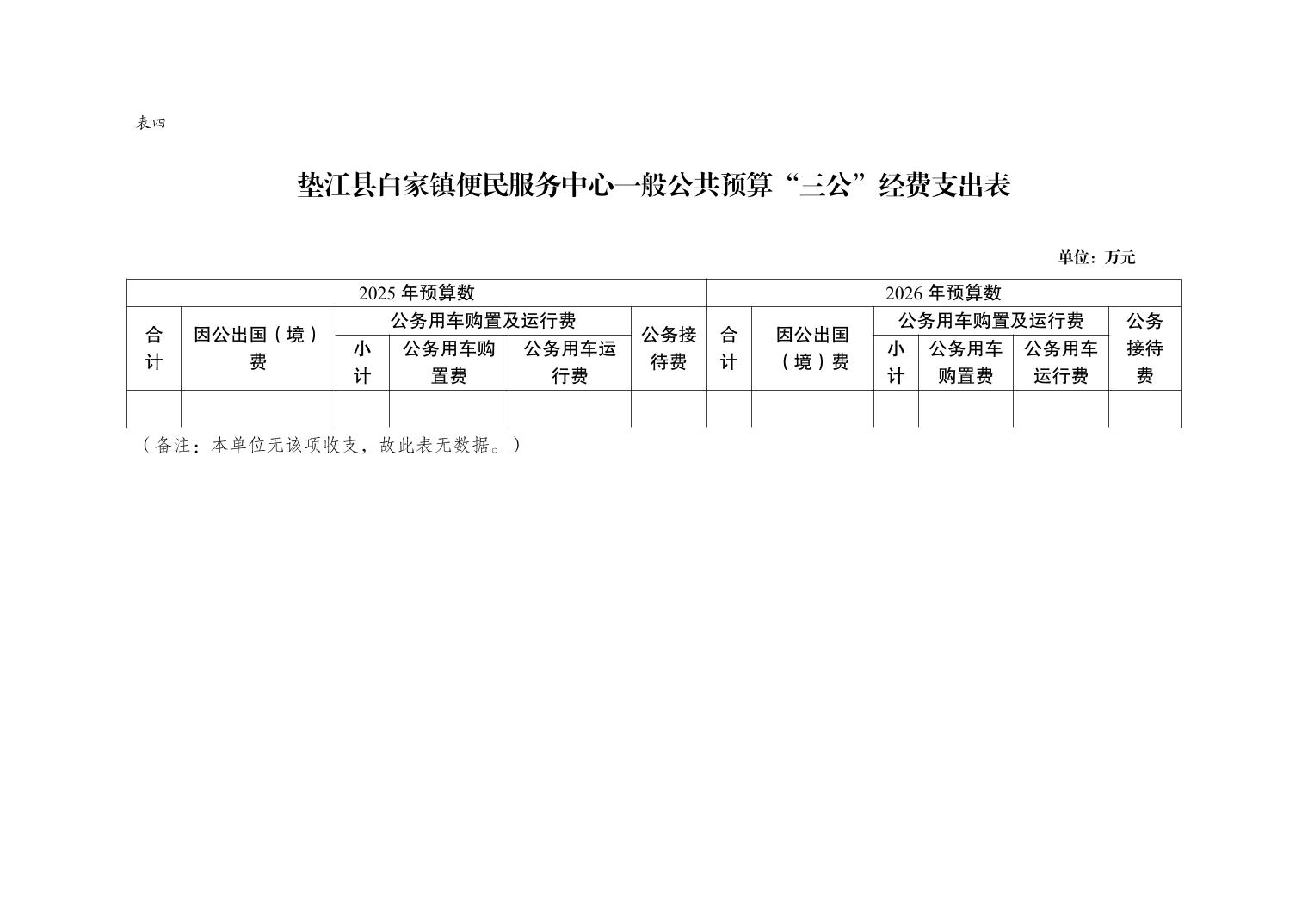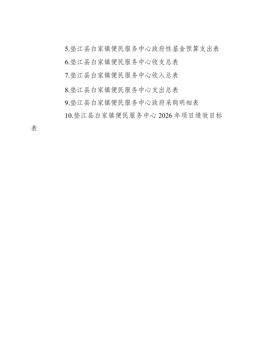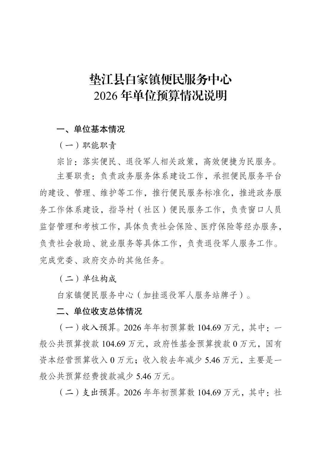 垫江县白家镇便民服务中心2026年单位预算情况说明