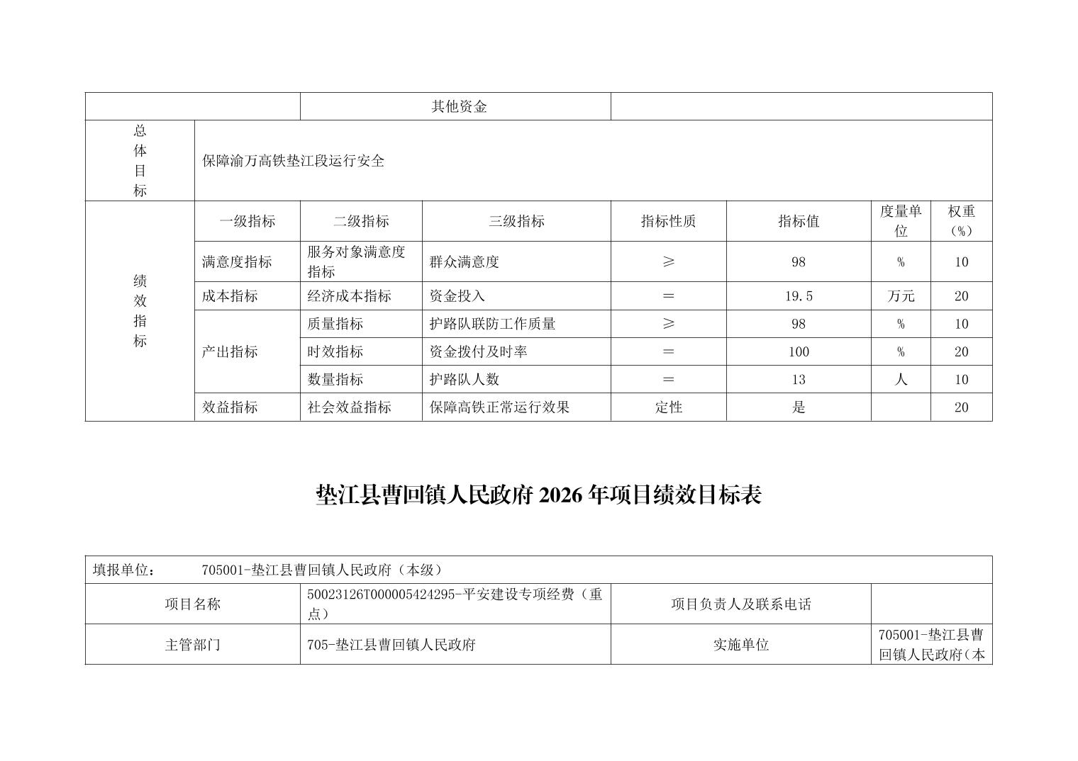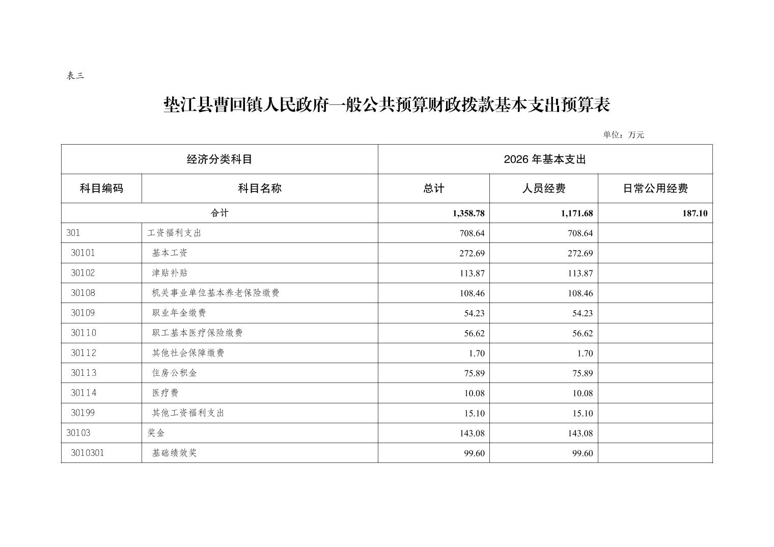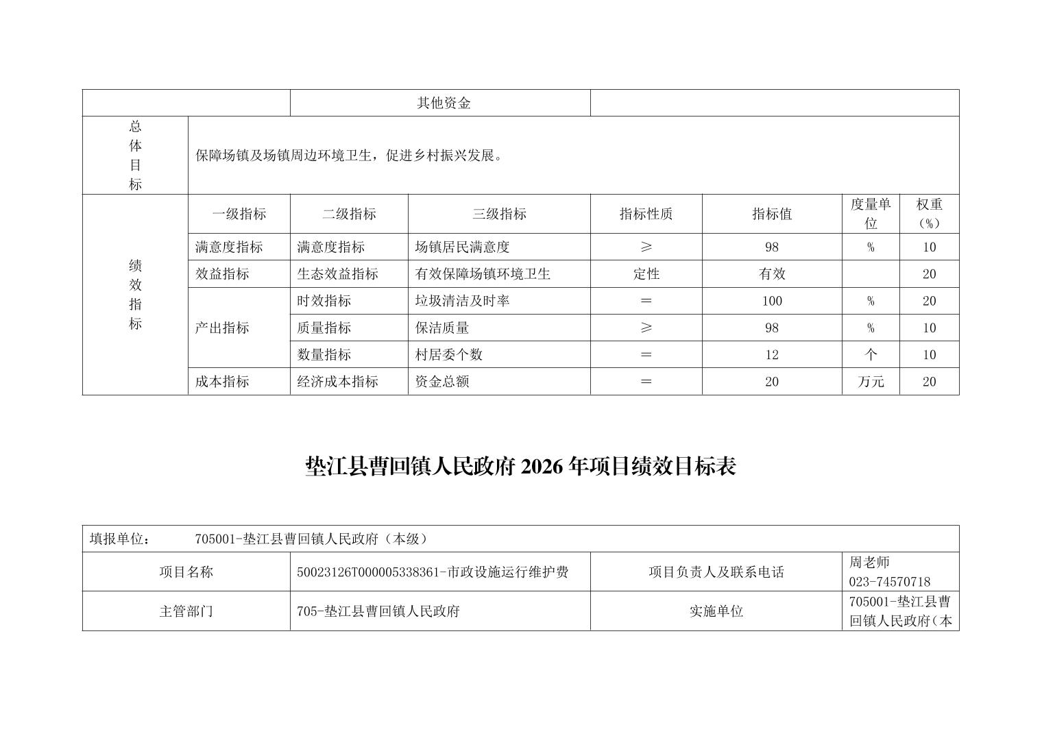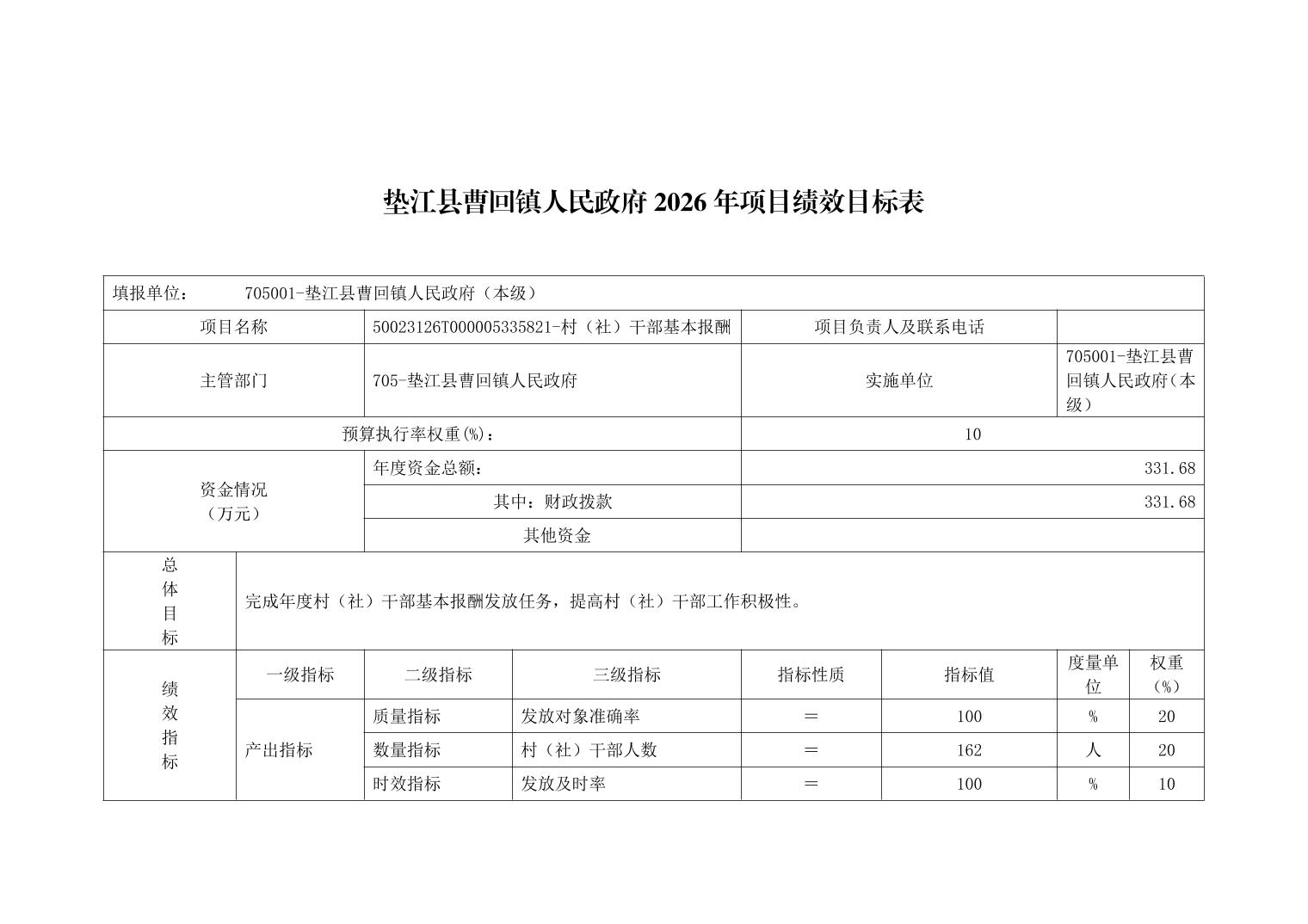 垫江县曹回镇人民政府 2026年部门预算情况说明