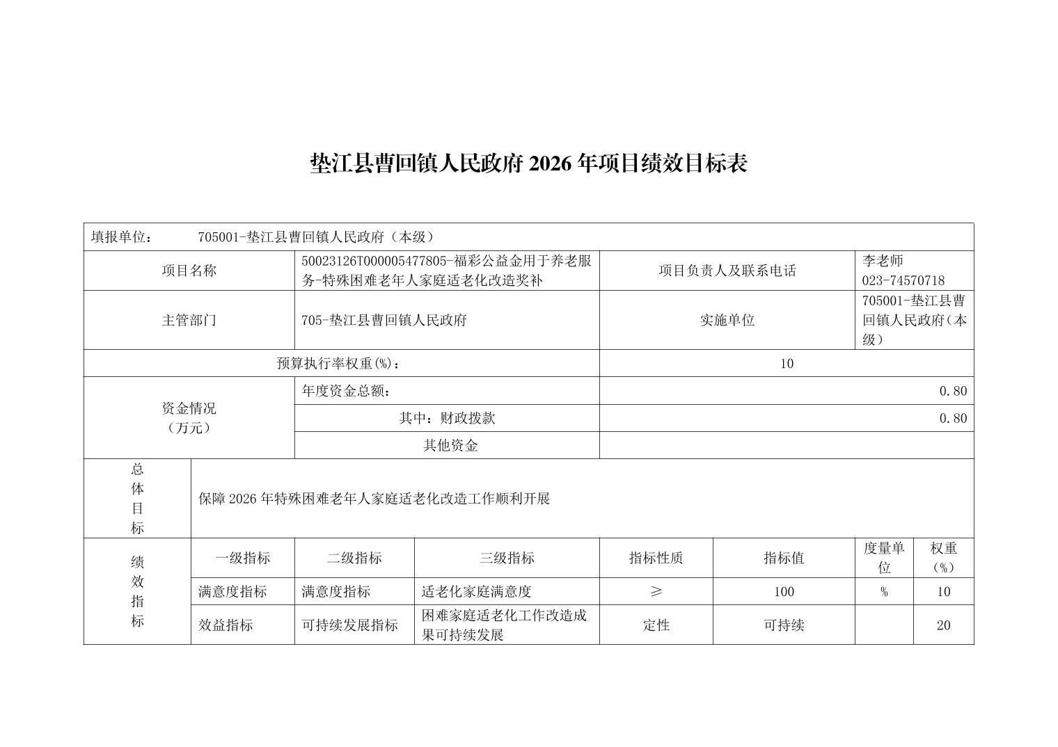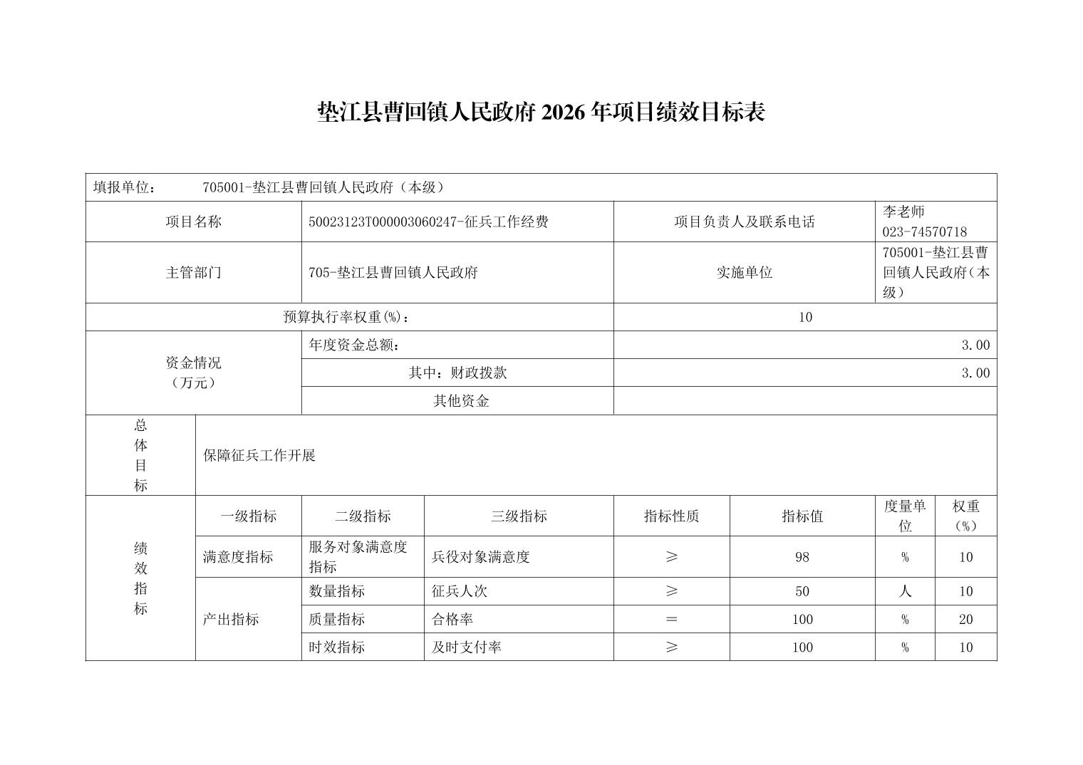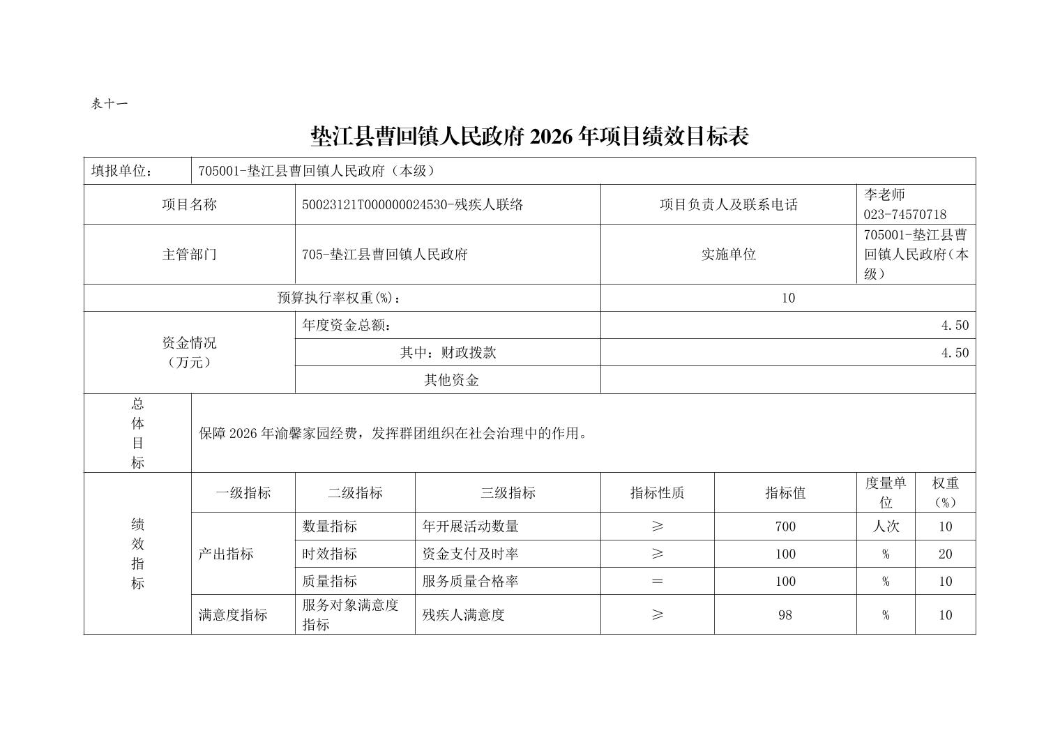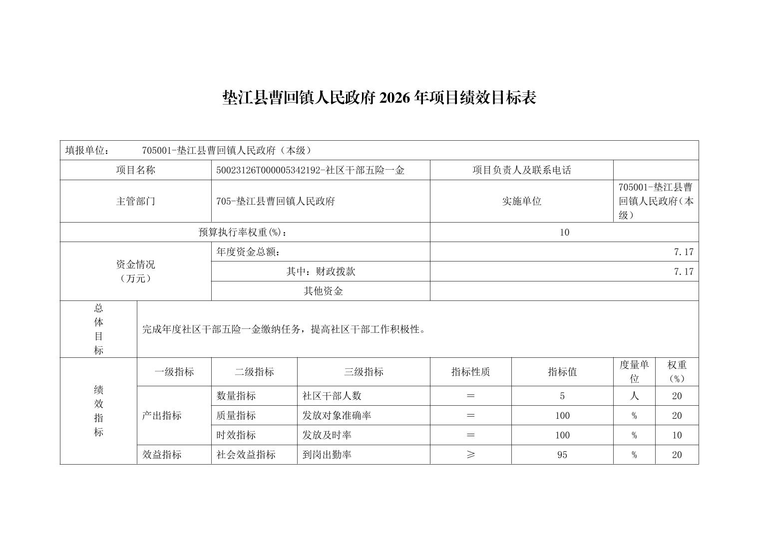 垫江县曹回镇人民政府 2026年部门预算情况说明