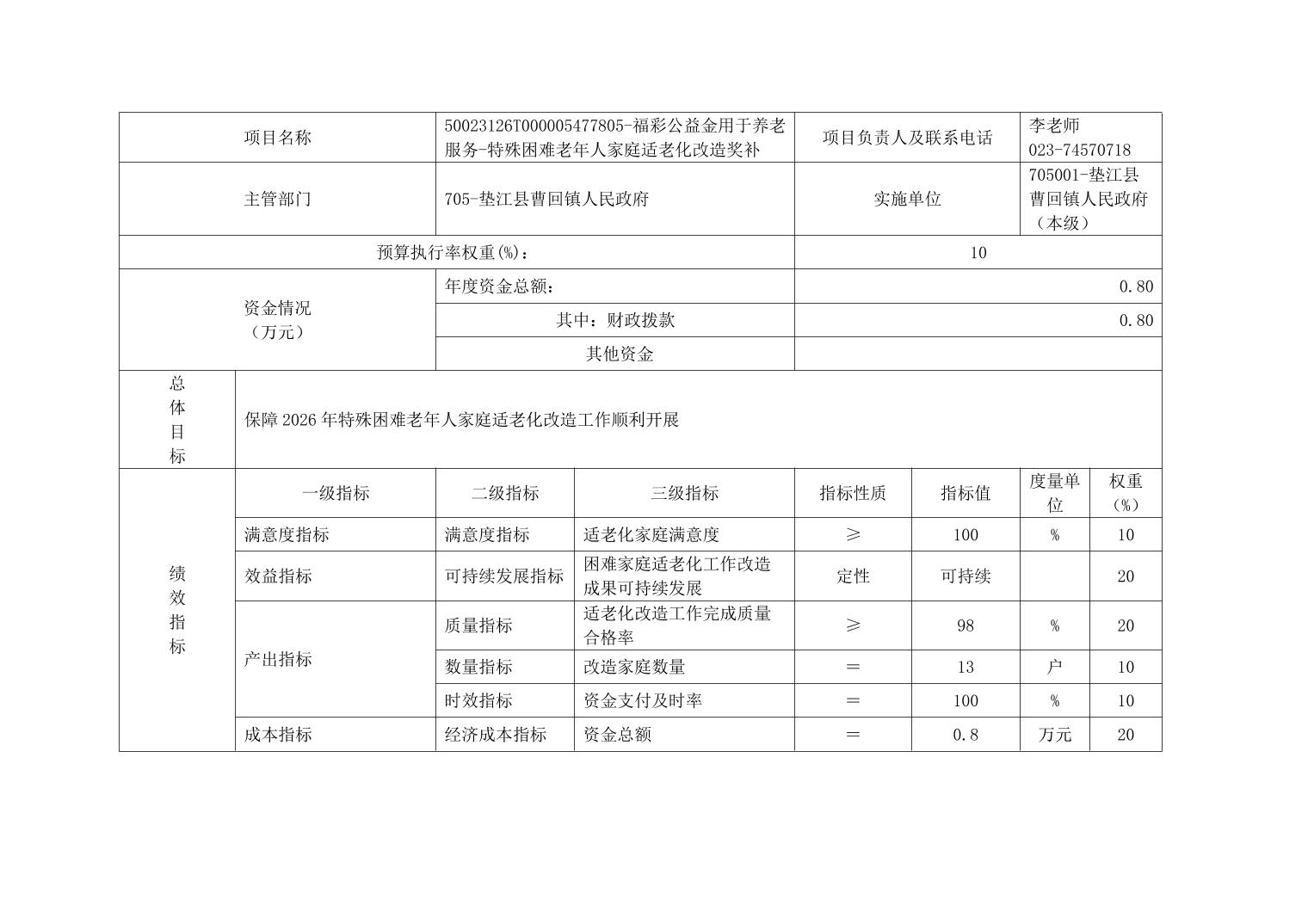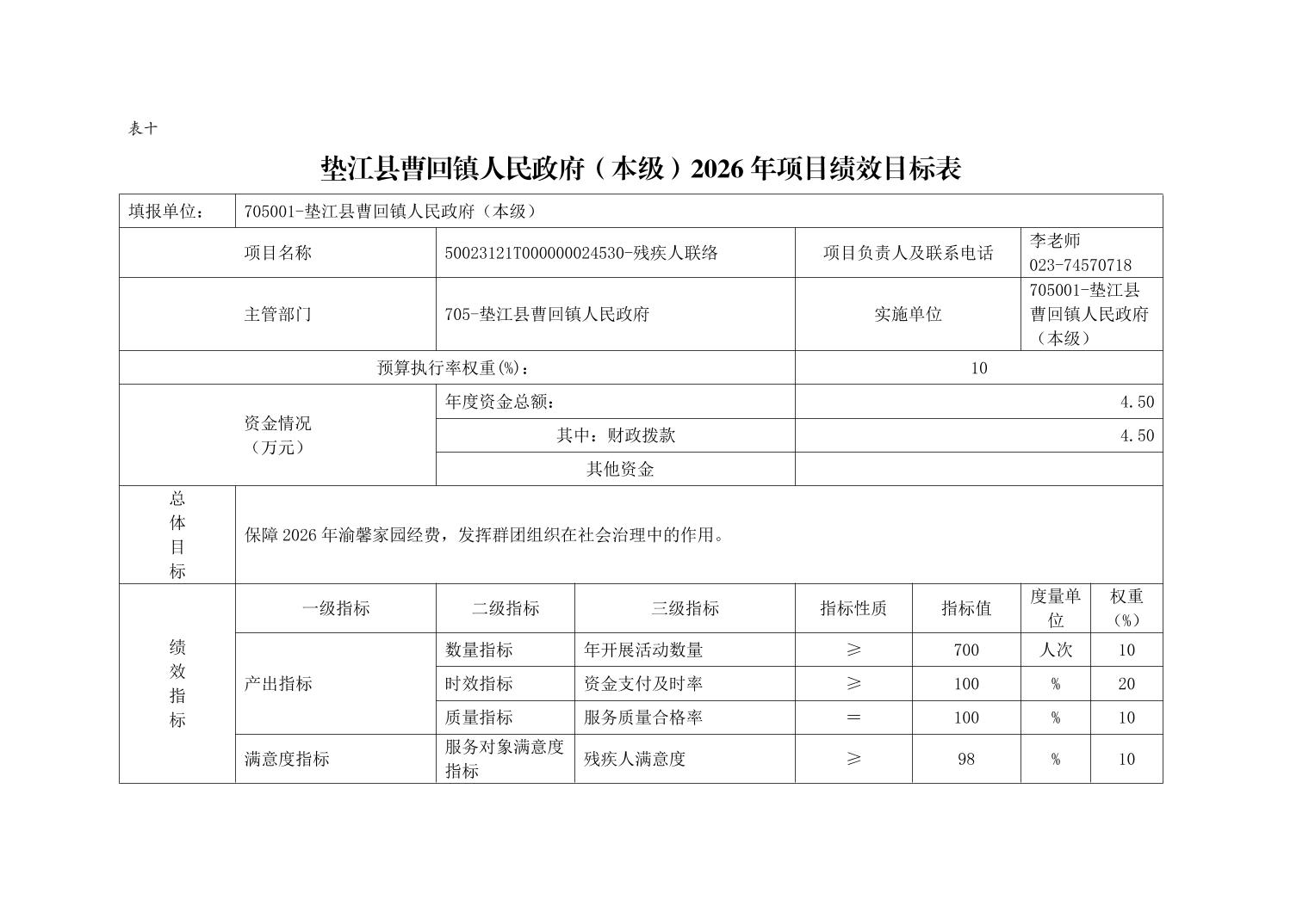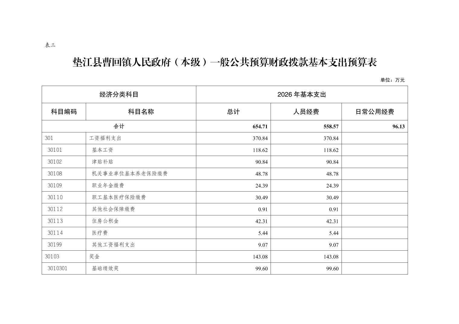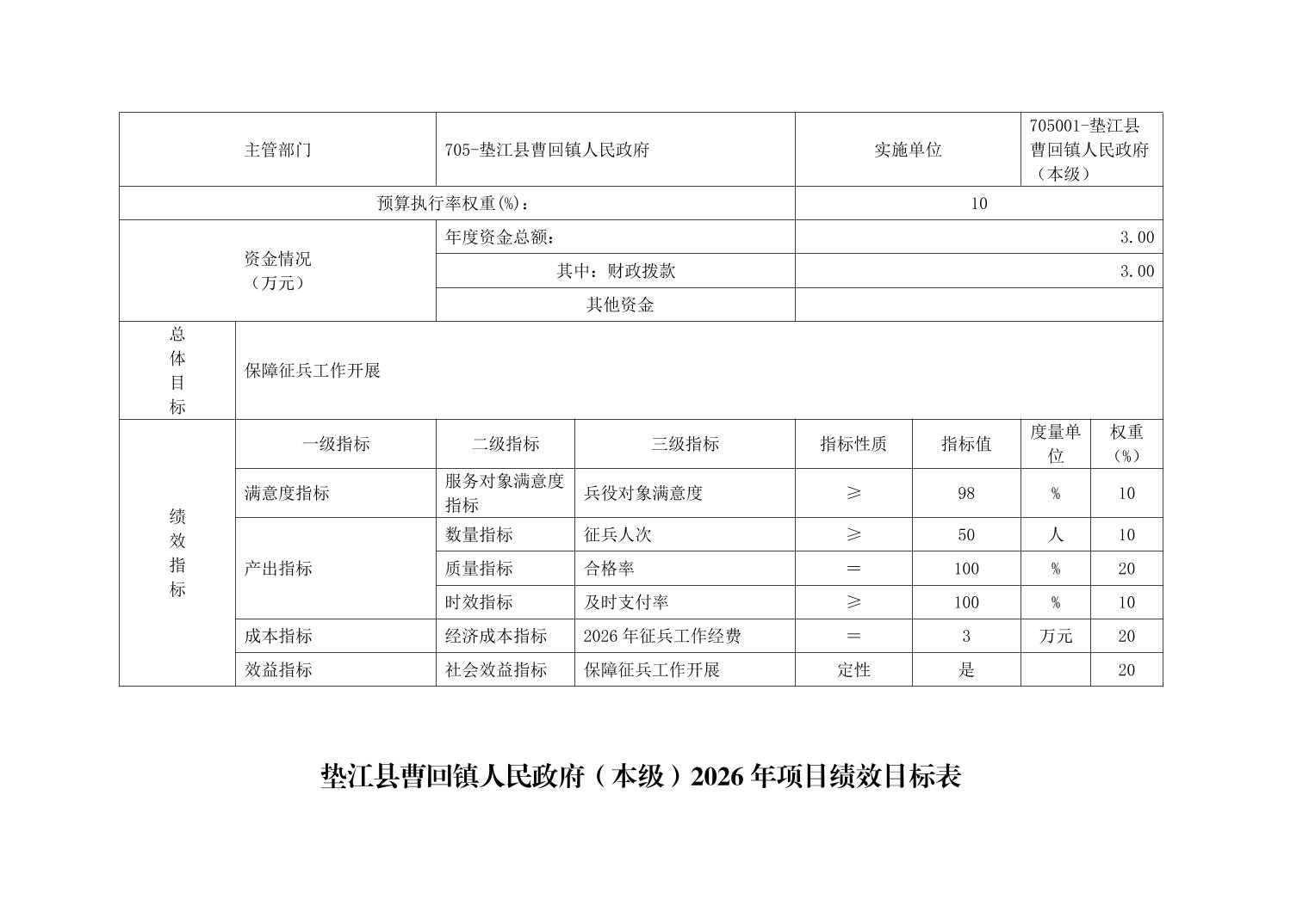 垫江县曹回镇人民政府(本级) 2026年单位预算情况说明