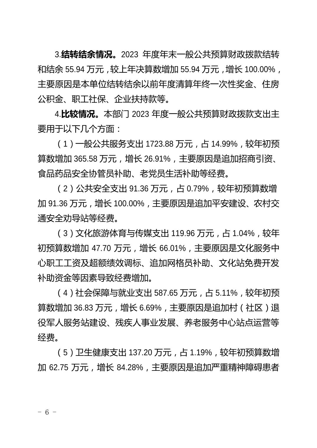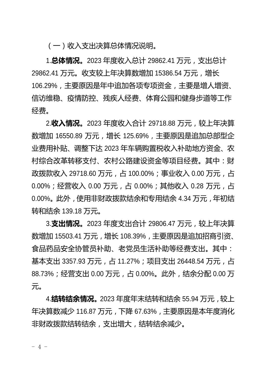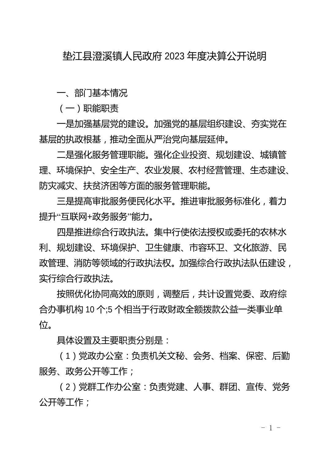 垫江县澄溪镇人民政府2023年度决算公开说明