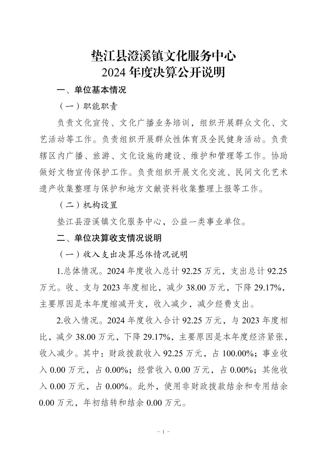 718003-垫江县澄溪镇文化服务中心_决算公开说明及公开报表(单位).pdf垫江县澄溪镇文化服务中心2024年度决算公开说明.docx