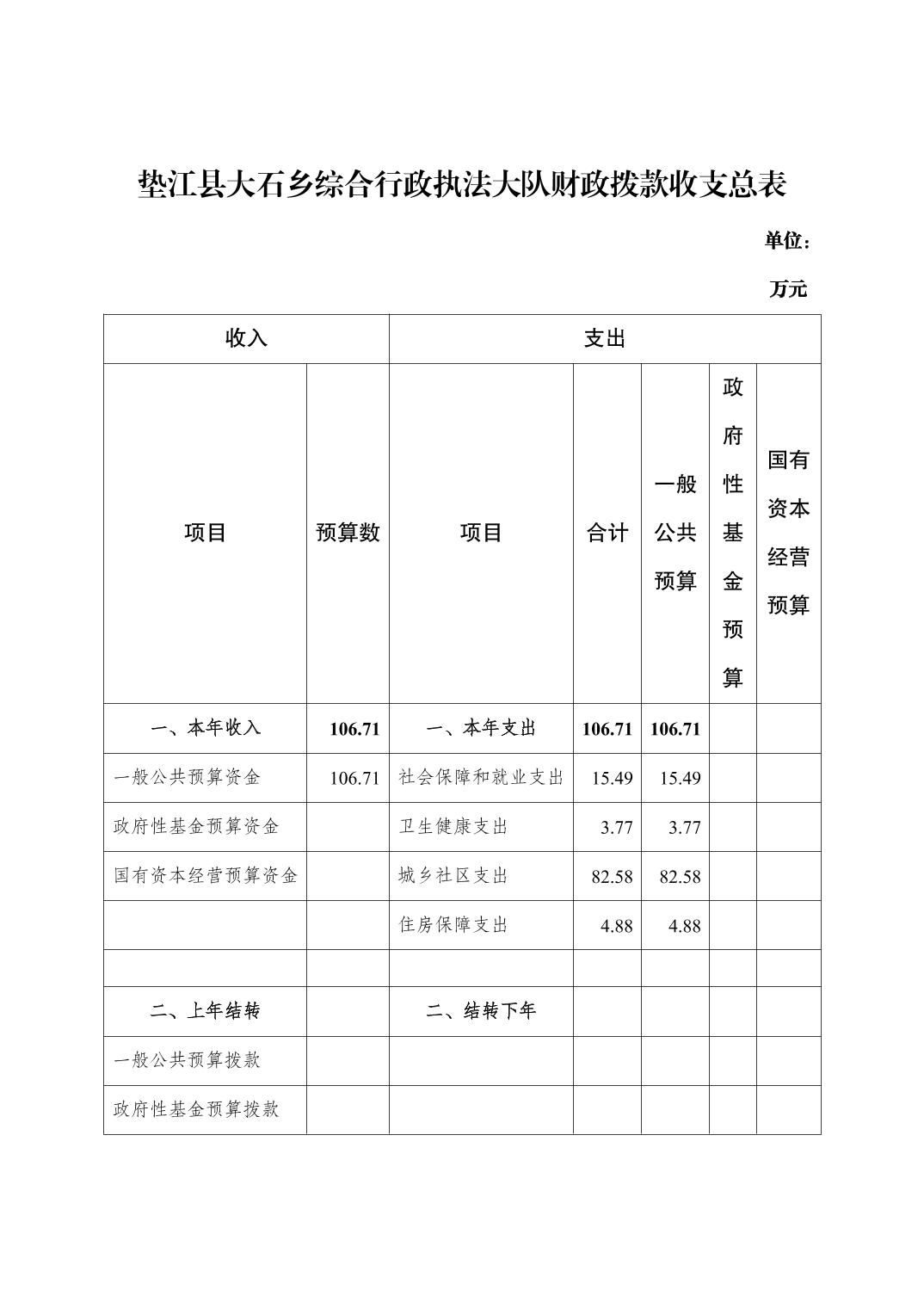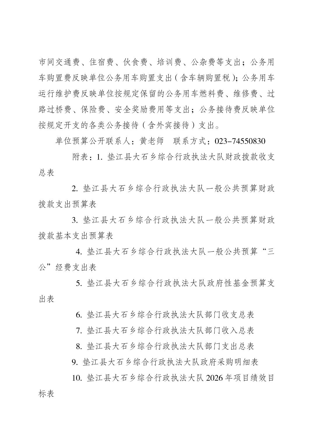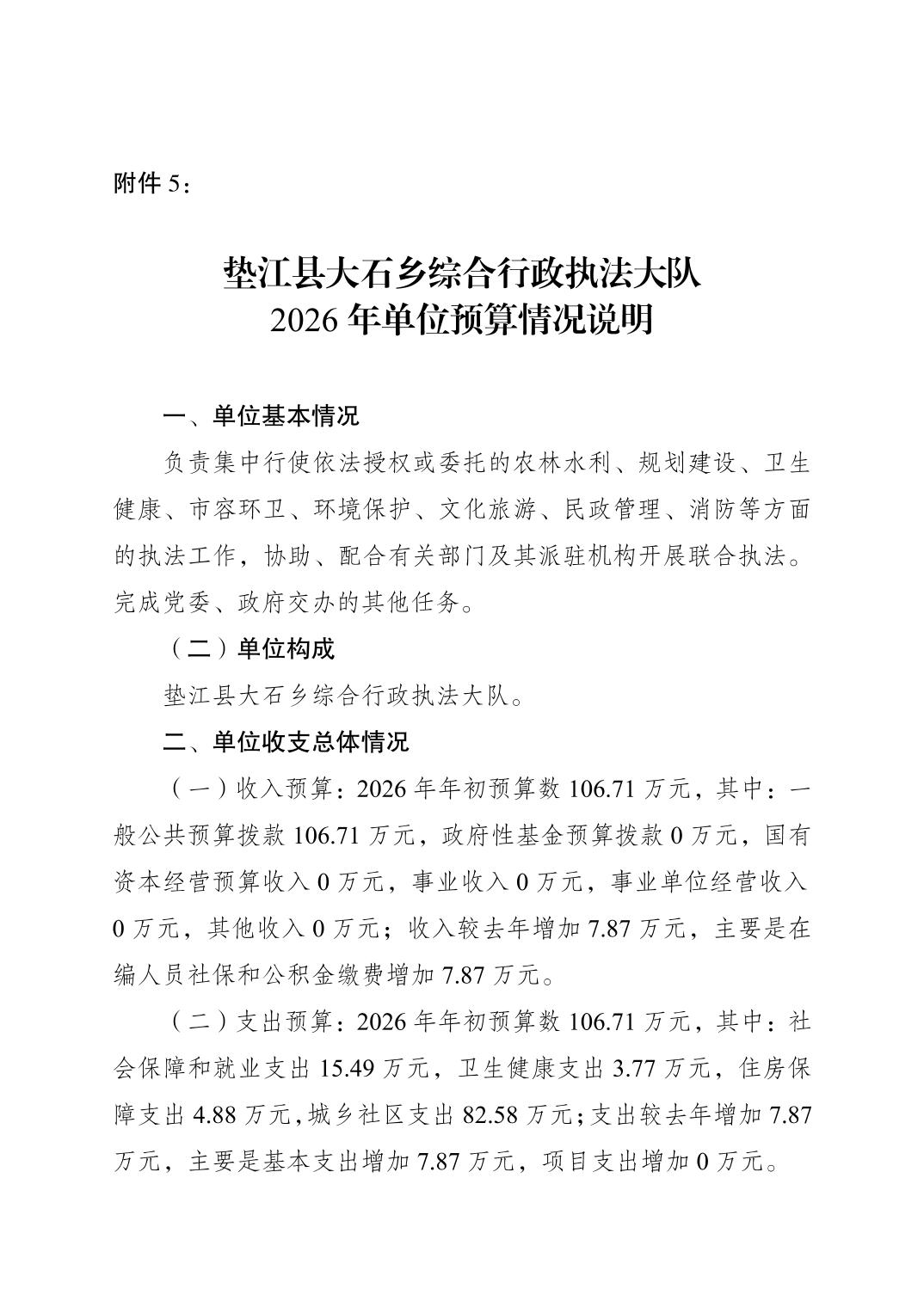 垫江县大石乡综合行政执法大队2026年单位预算情况说明