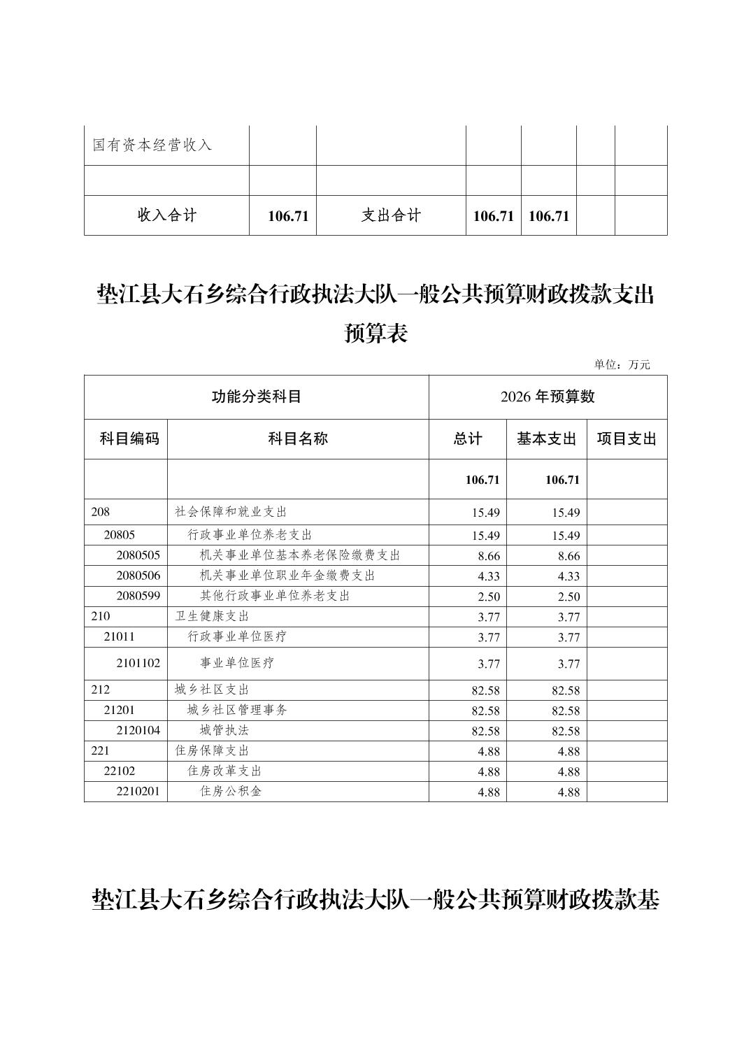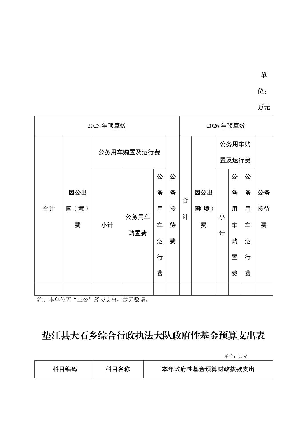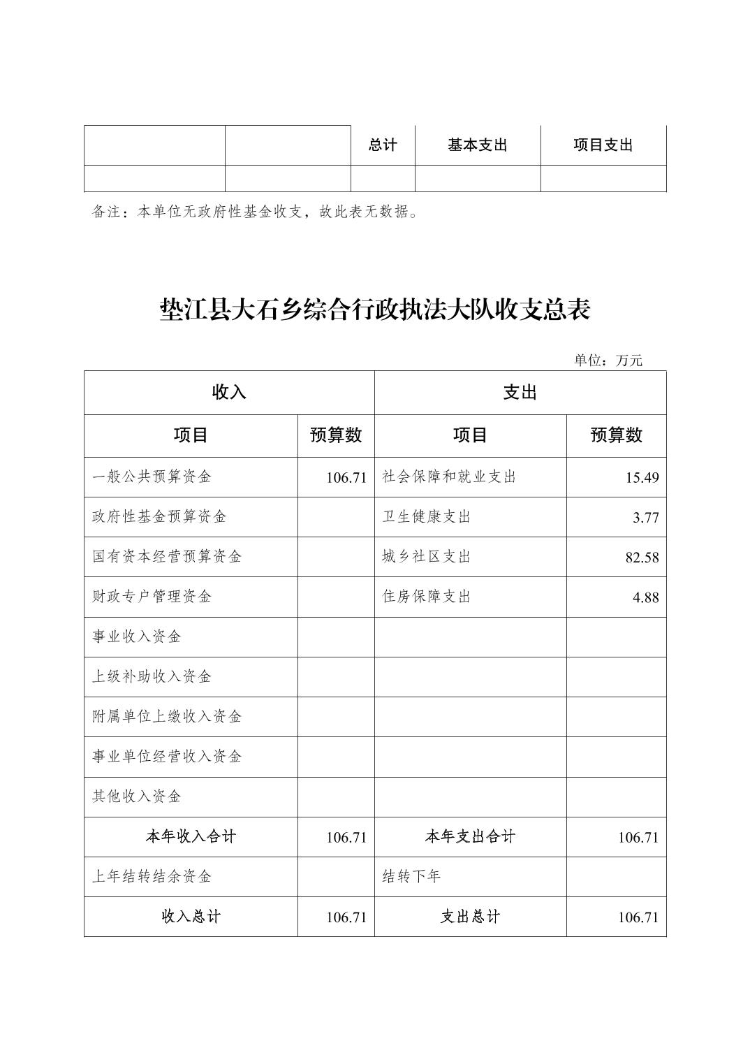 垫江县大石乡综合行政执法大队2026年单位预算情况说明