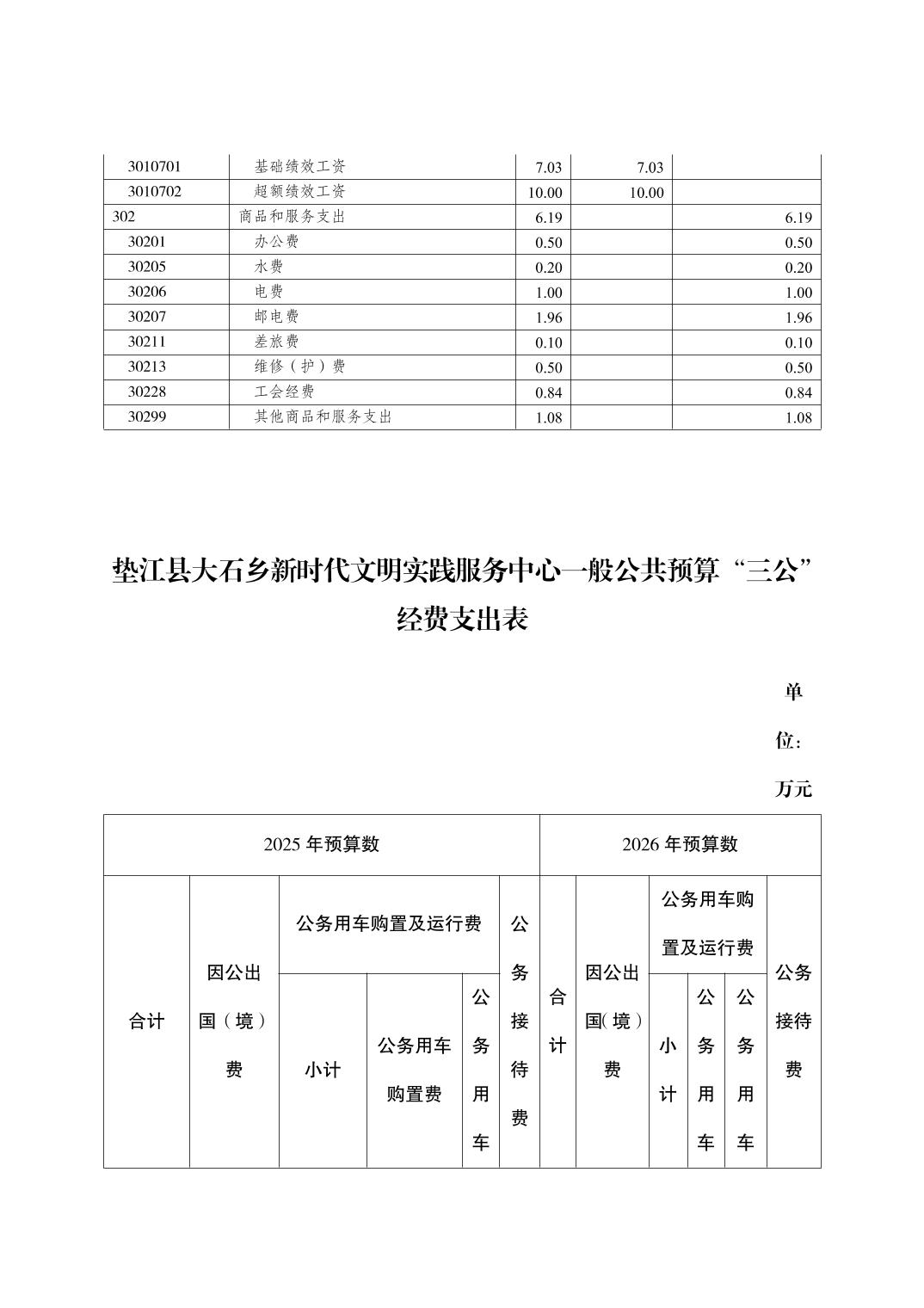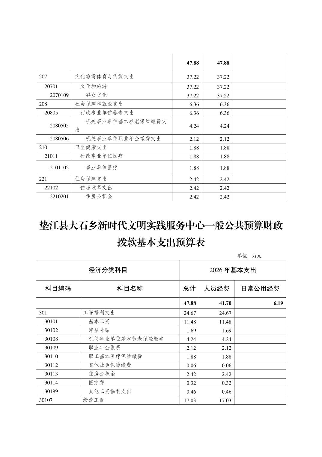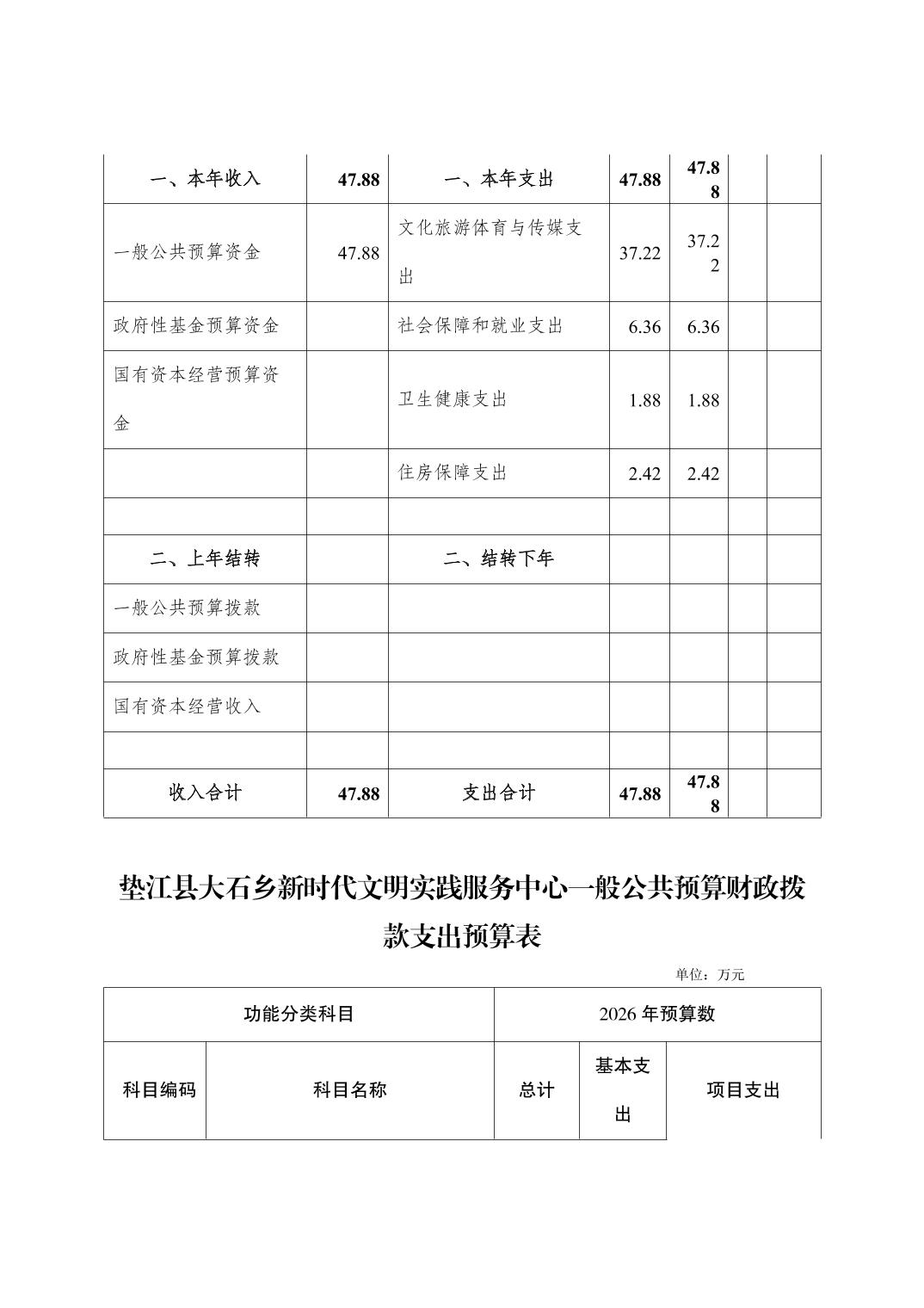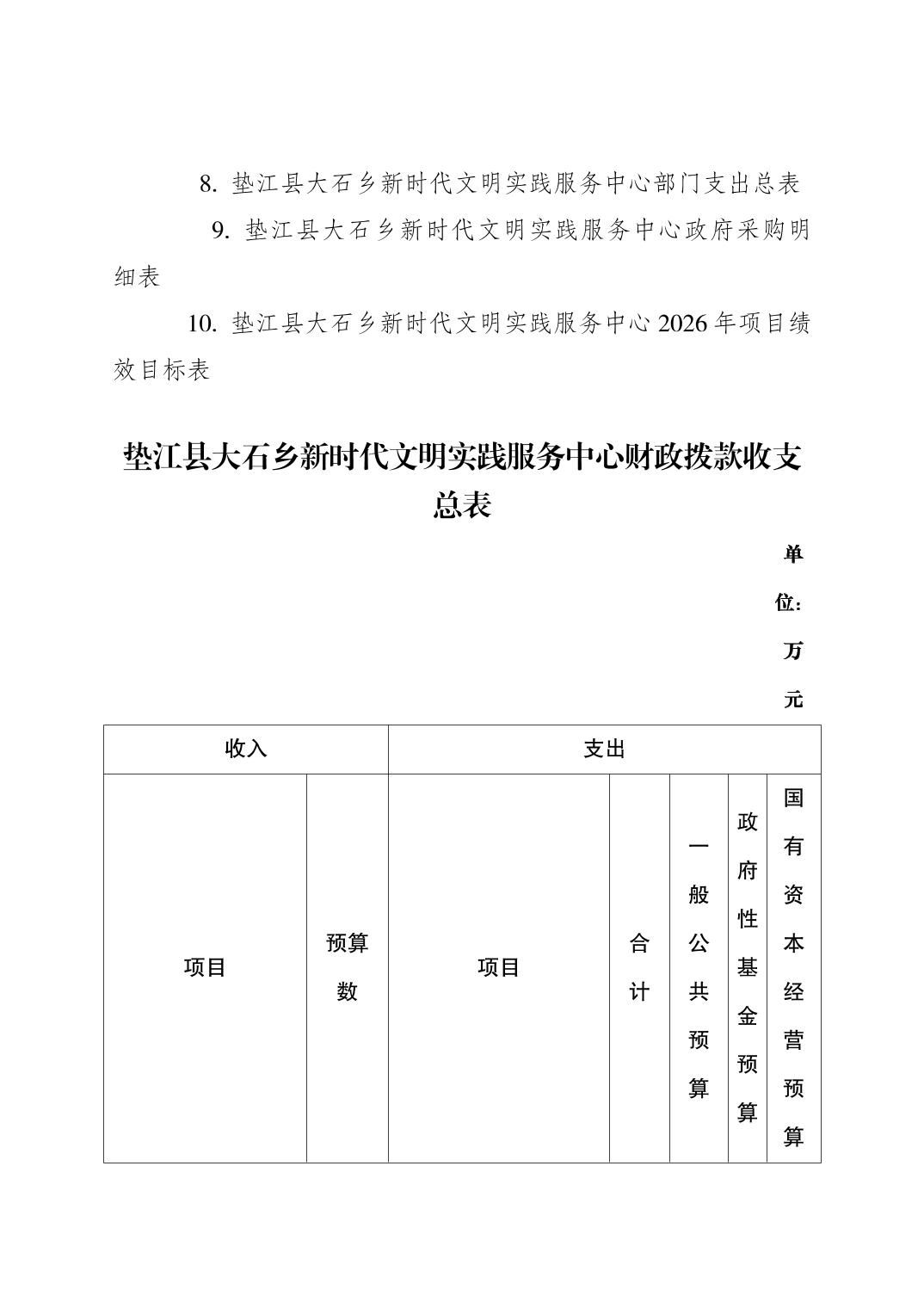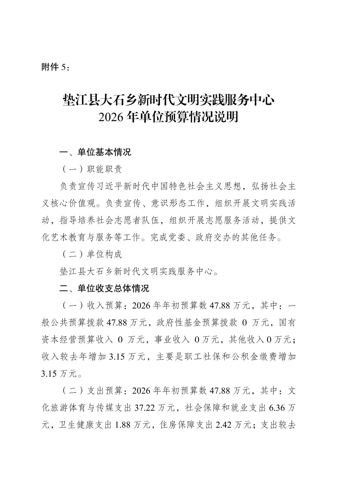垫江县大石乡新时代文明实践服务中心2026年单位预算情况说明
