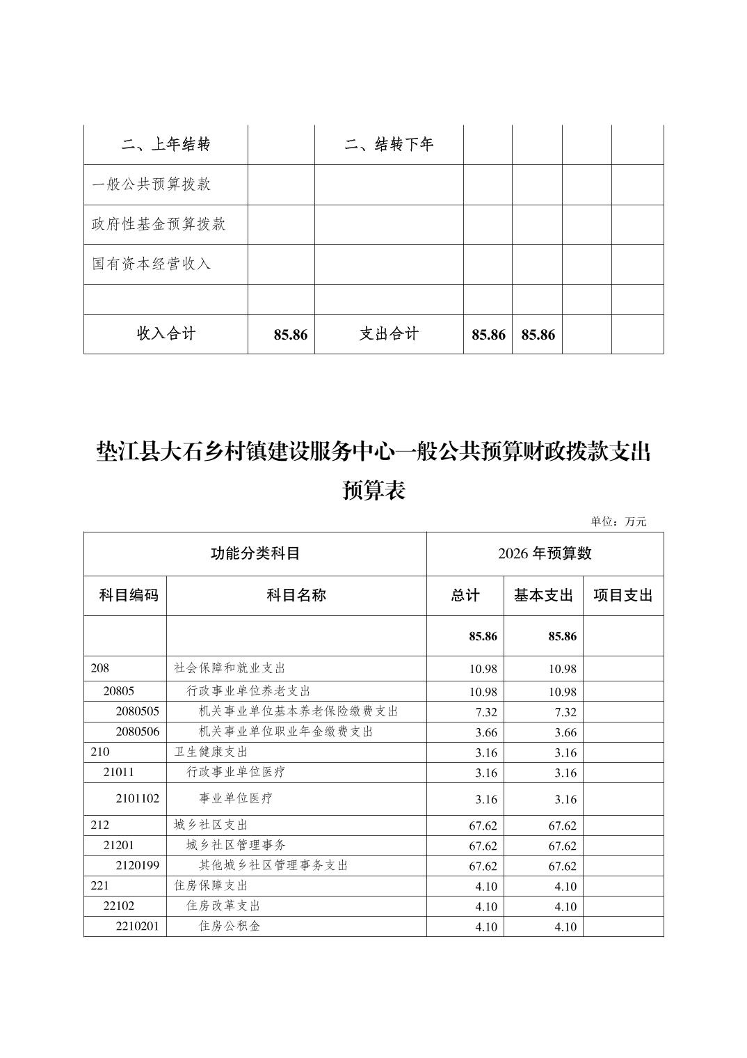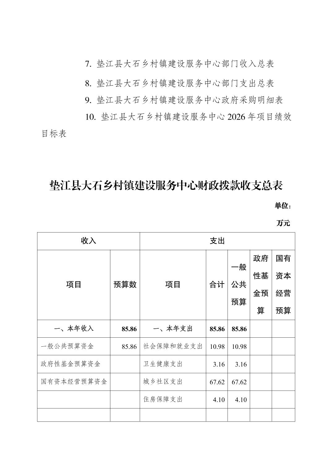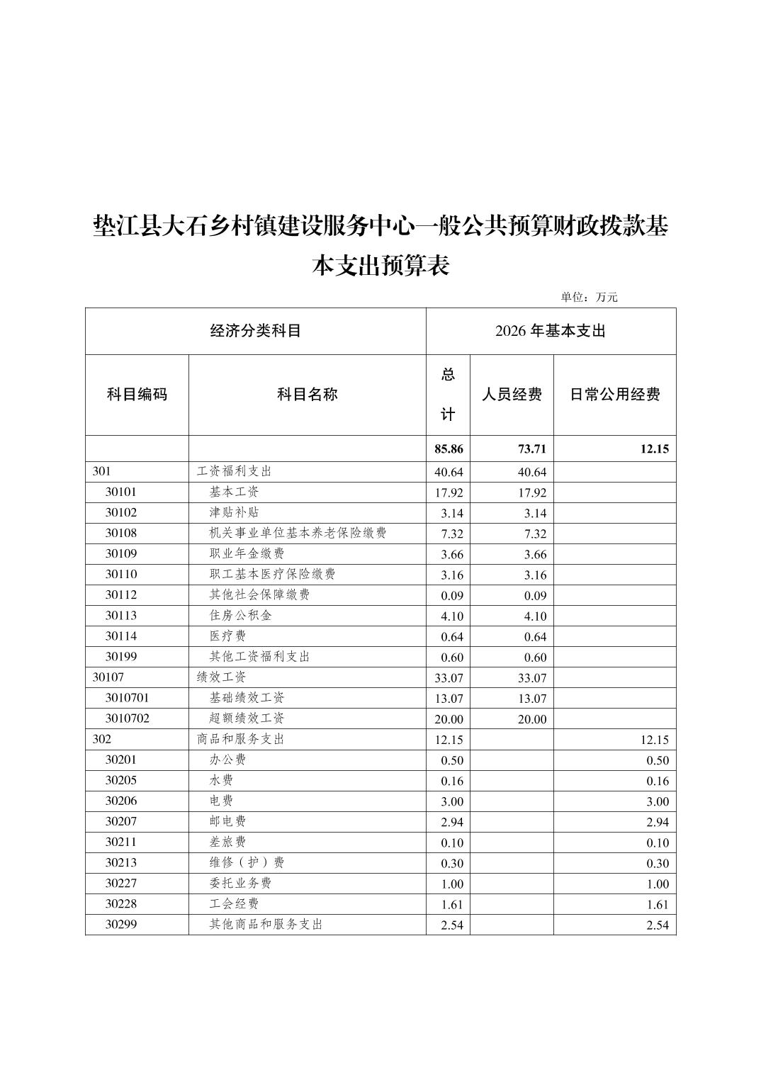 垫江县大石乡村镇建设服务中心2026年单位预算情况说明