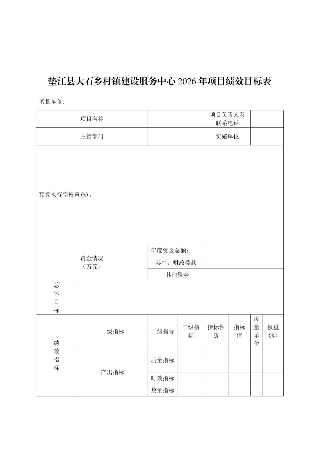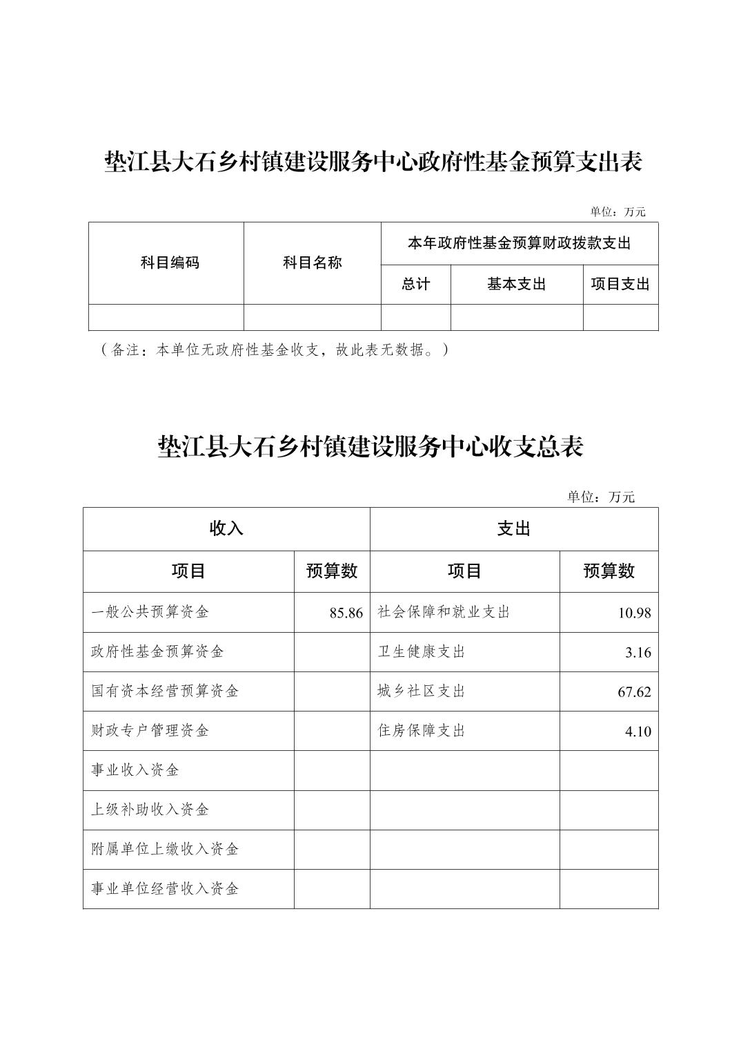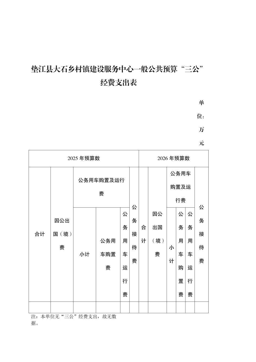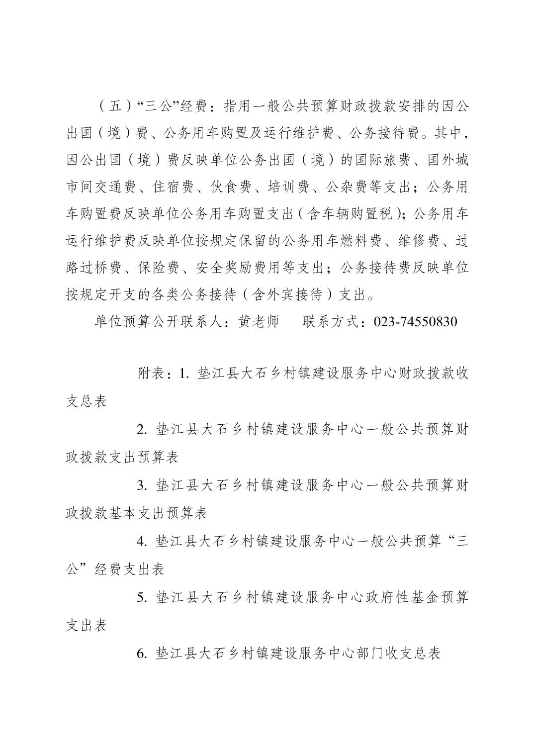 垫江县大石乡村镇建设服务中心2026年单位预算情况说明