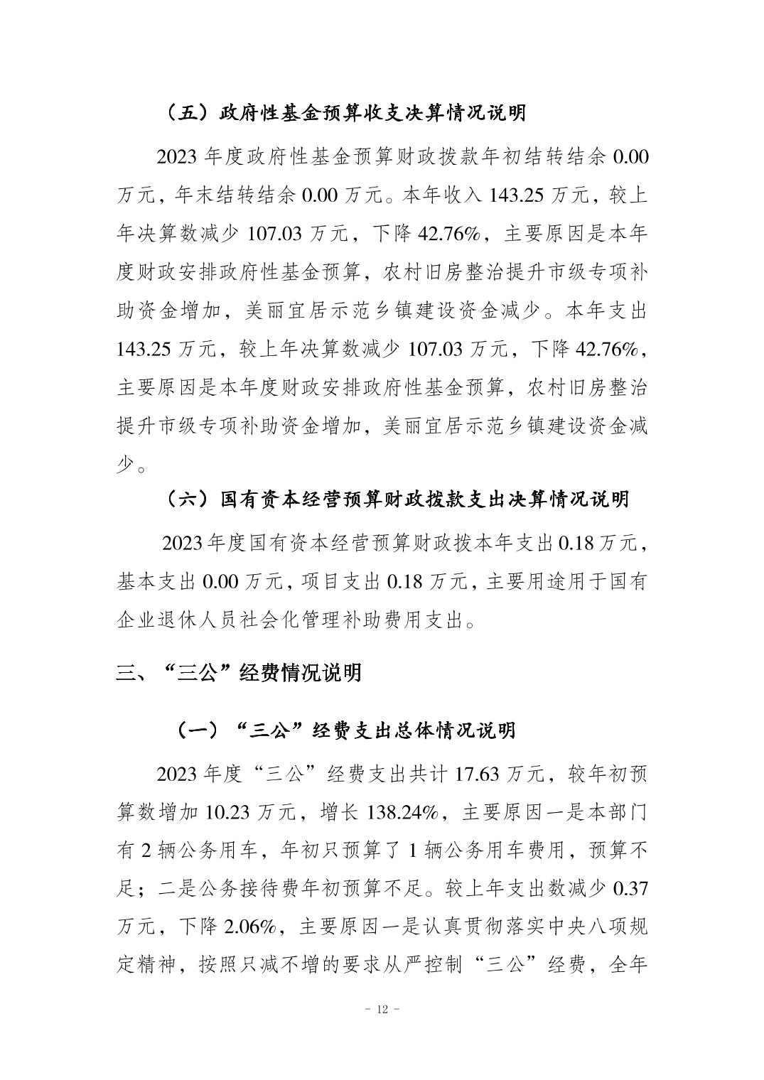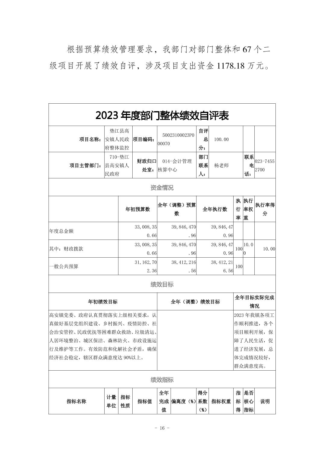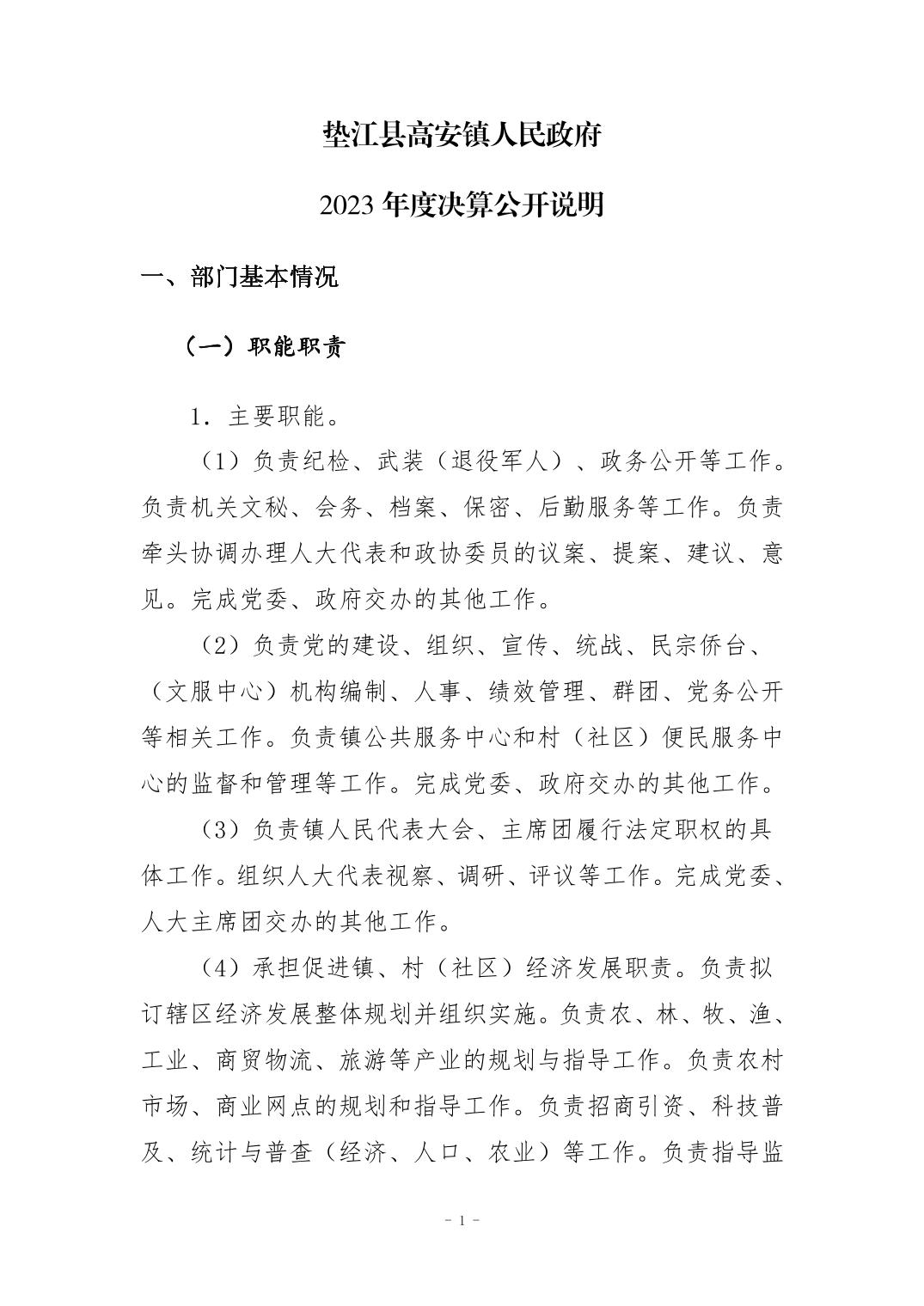 垫江县高安镇人民政府2023年度部门决算公开说明
