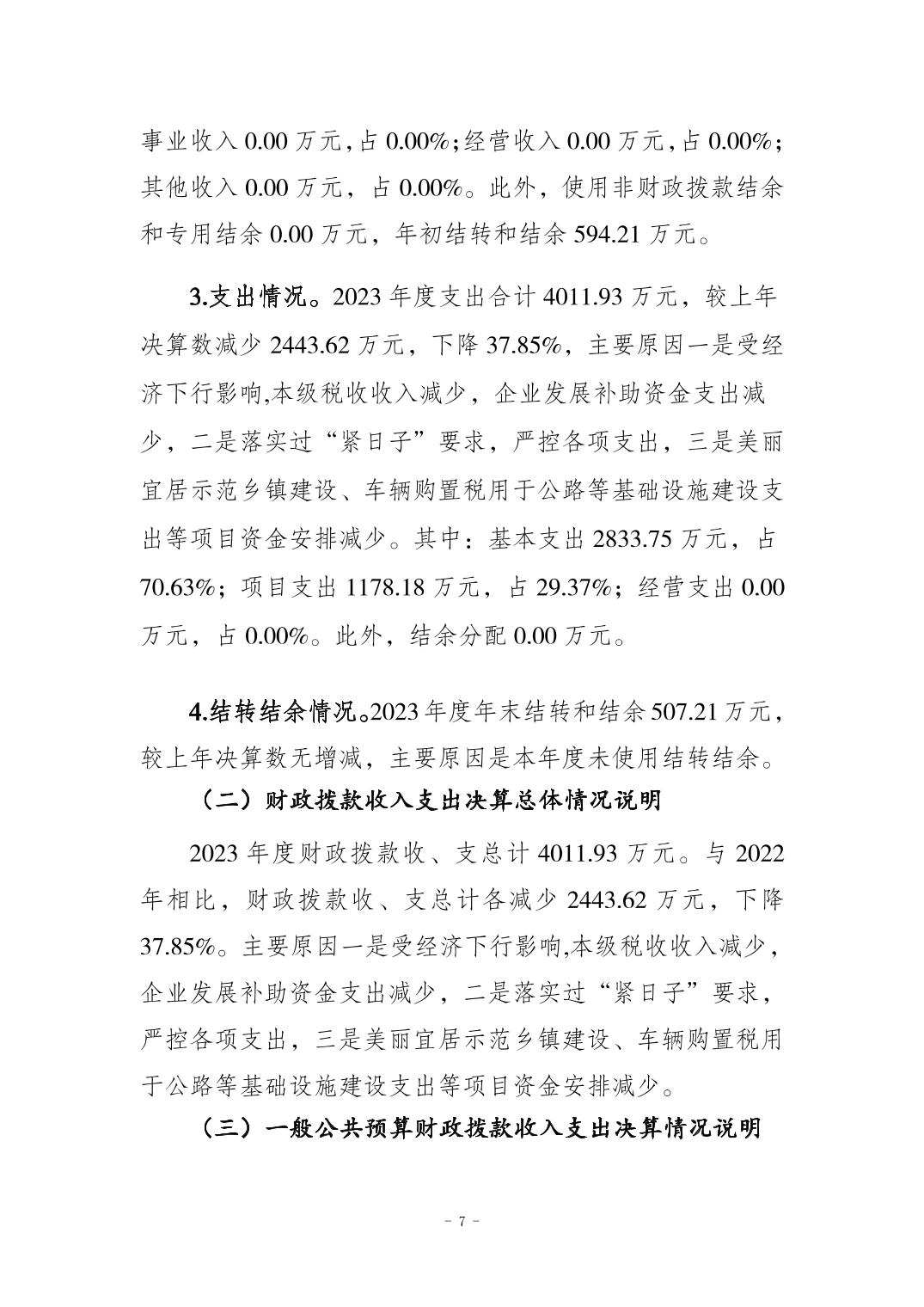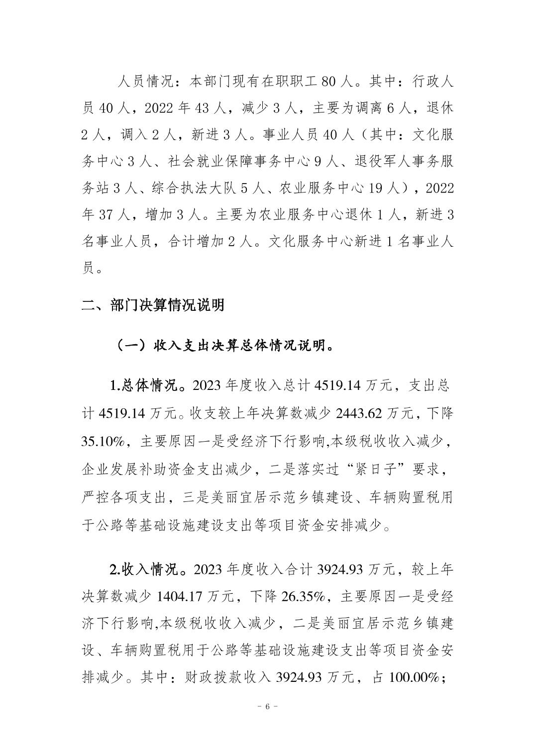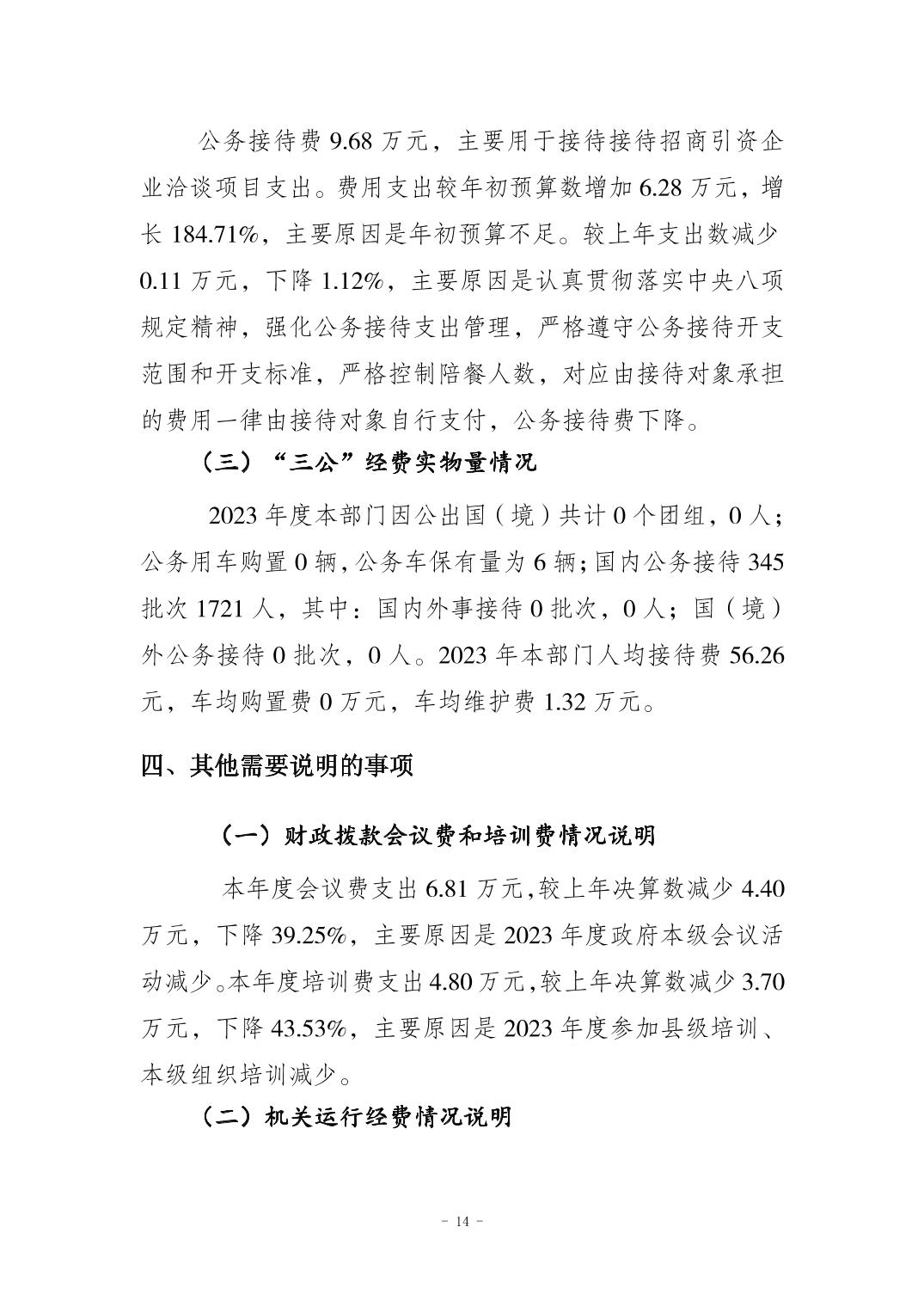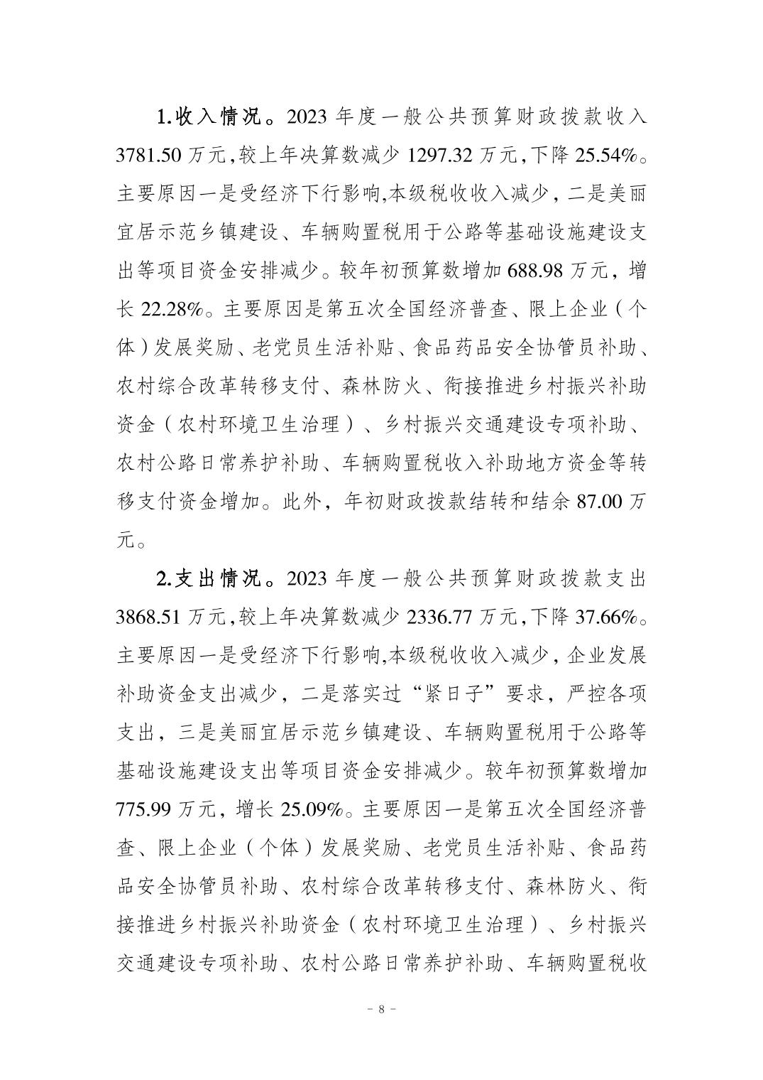 垫江县高安镇人民政府2023年度部门决算公开说明