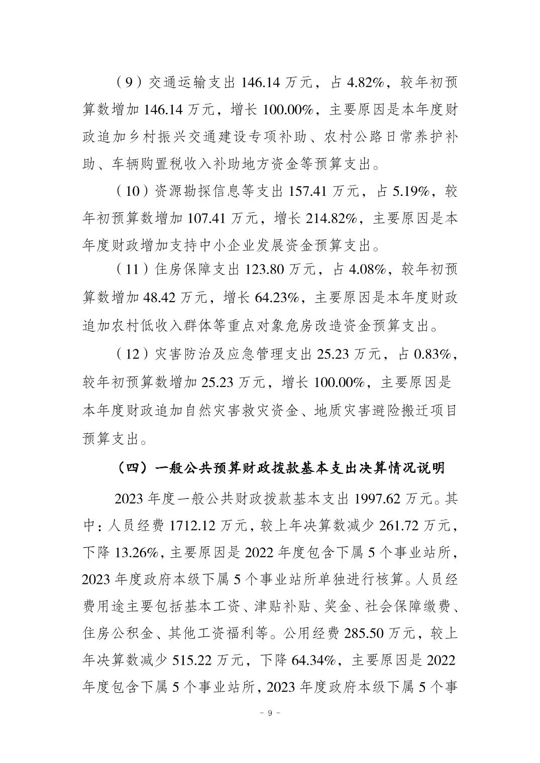 垫江县高安镇人民政府(本级)2023年度单位决算公开说明