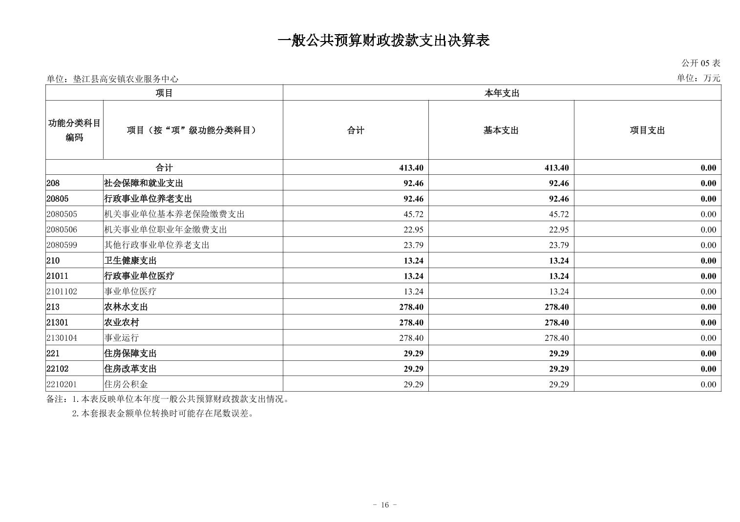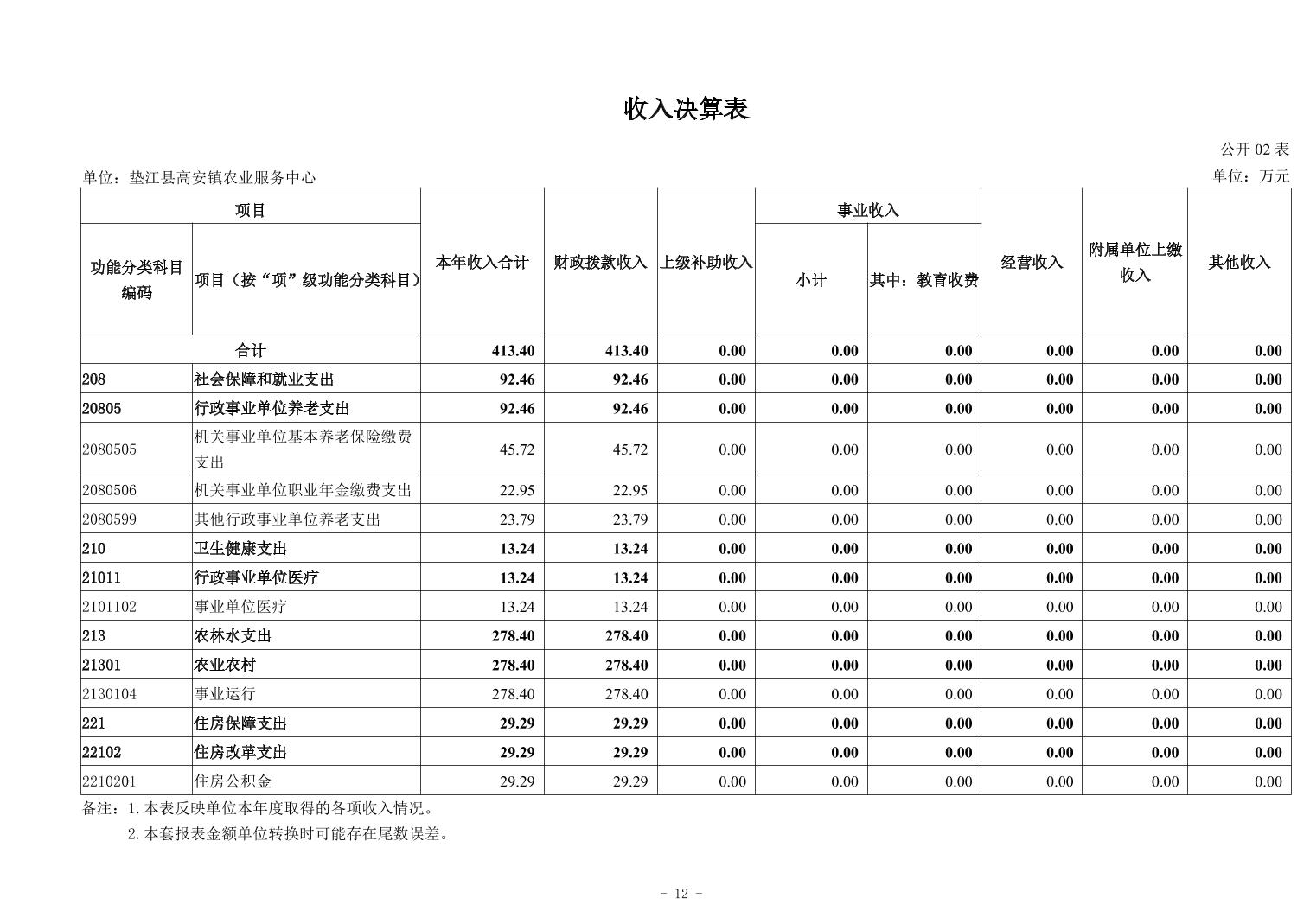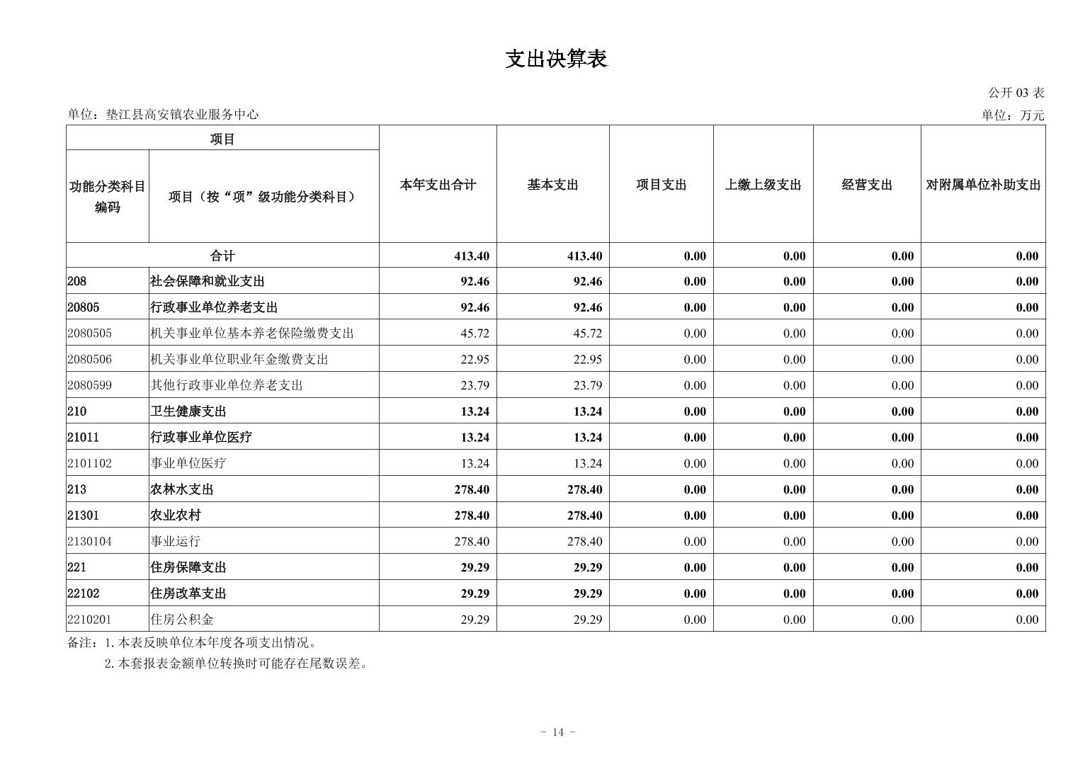 垫江县高安镇农业服务中心2024年度单位决算公开说明