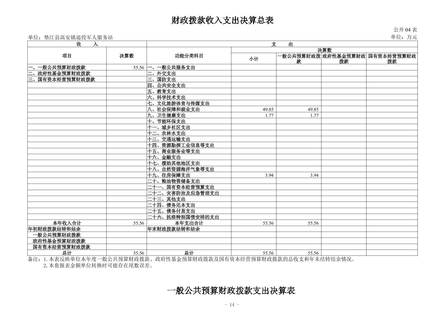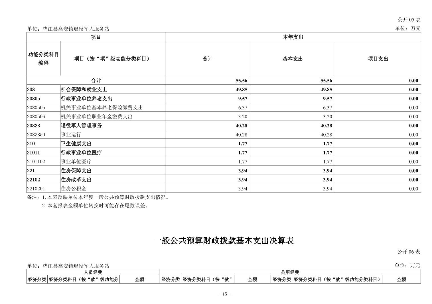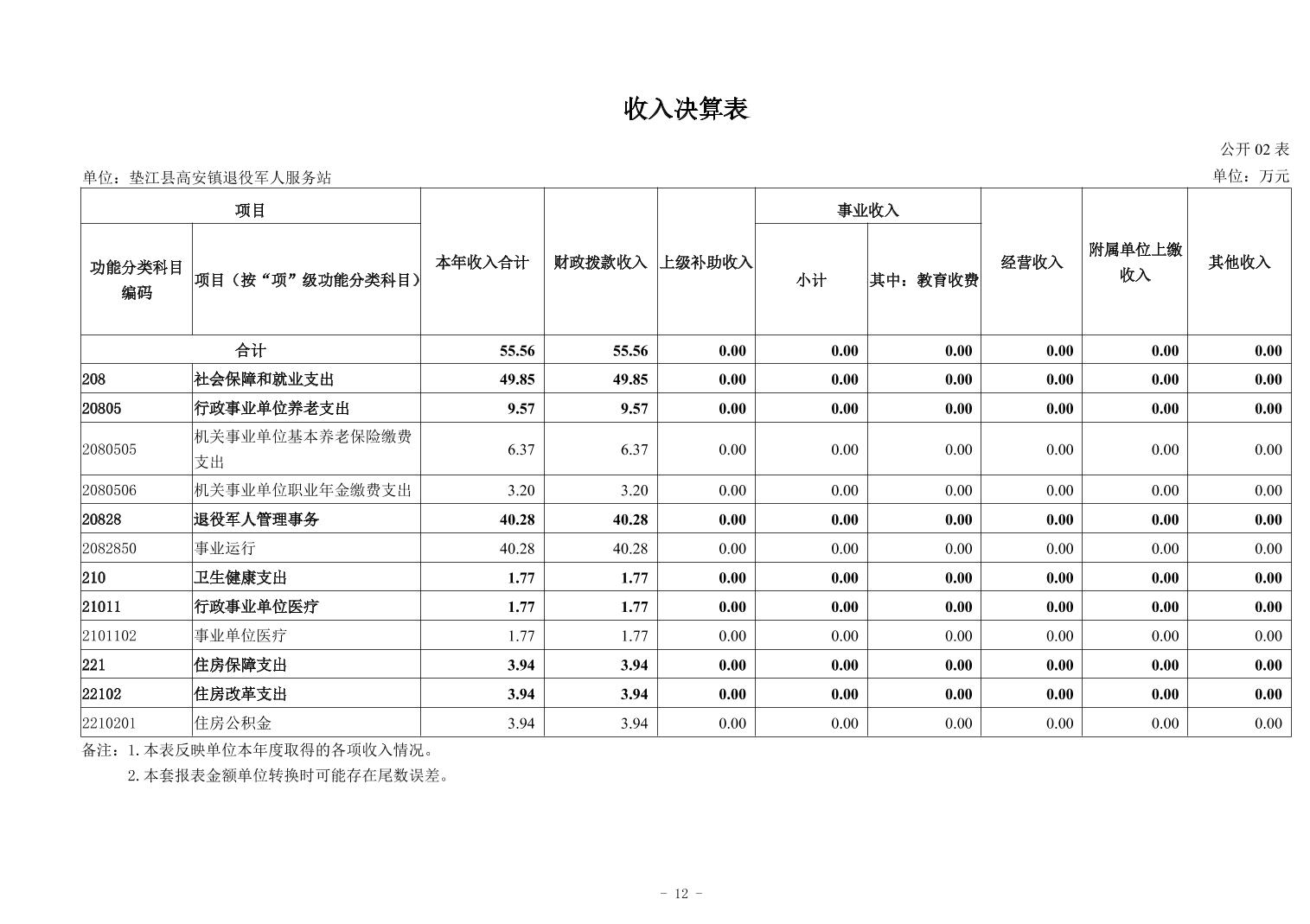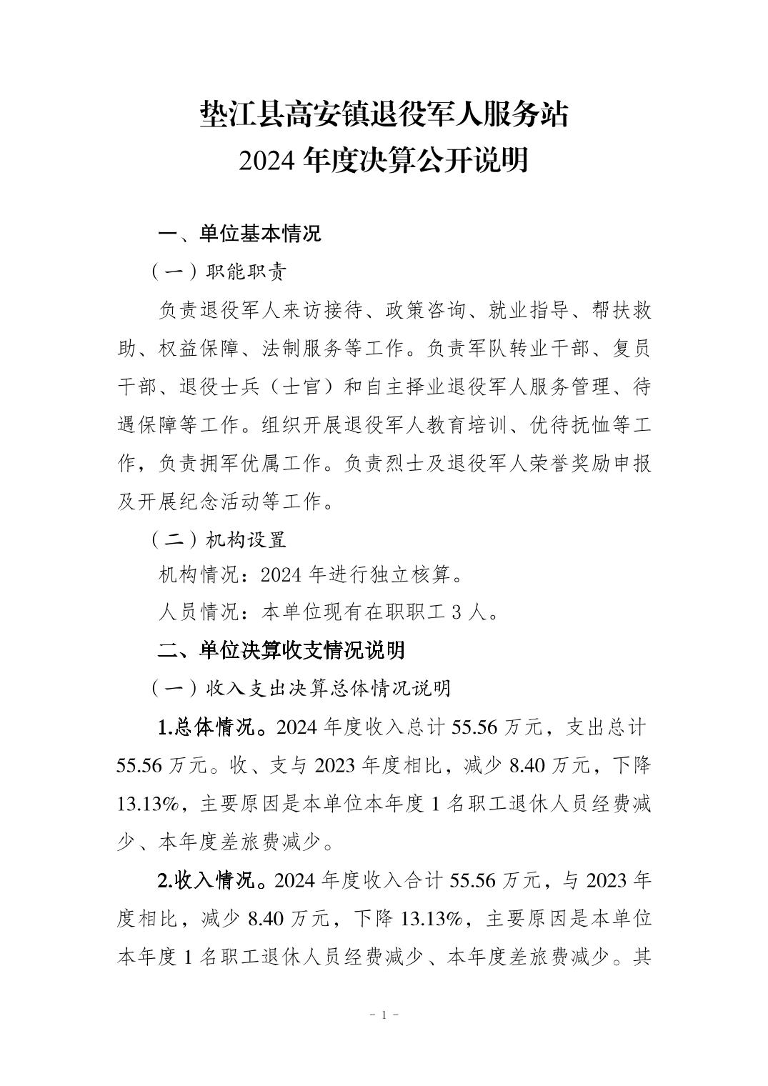 垫江县高安镇退役军人服务站2024年度单位决算公开说明