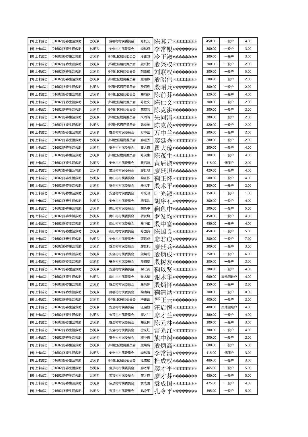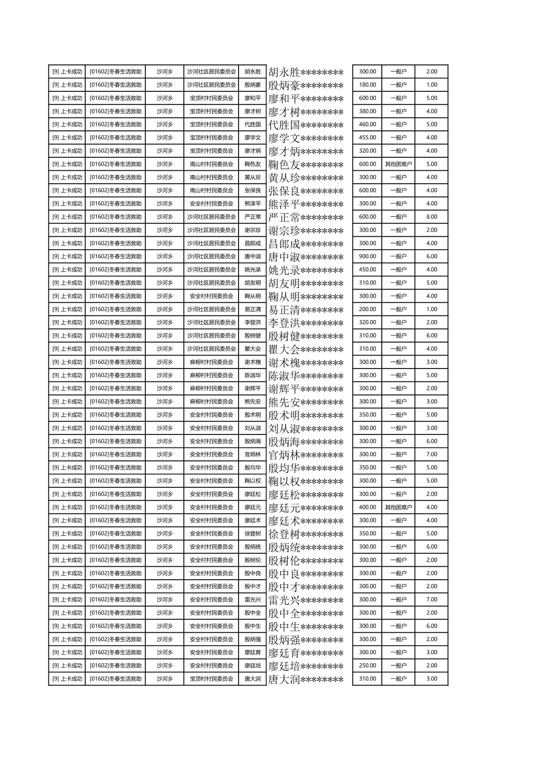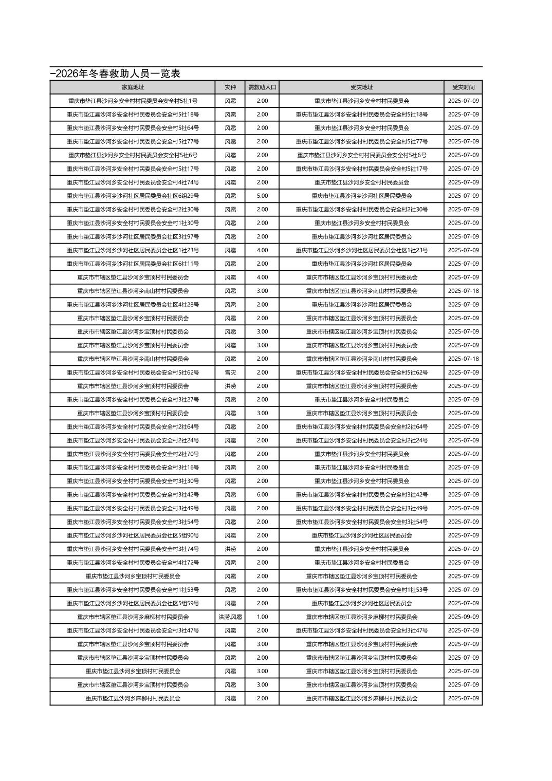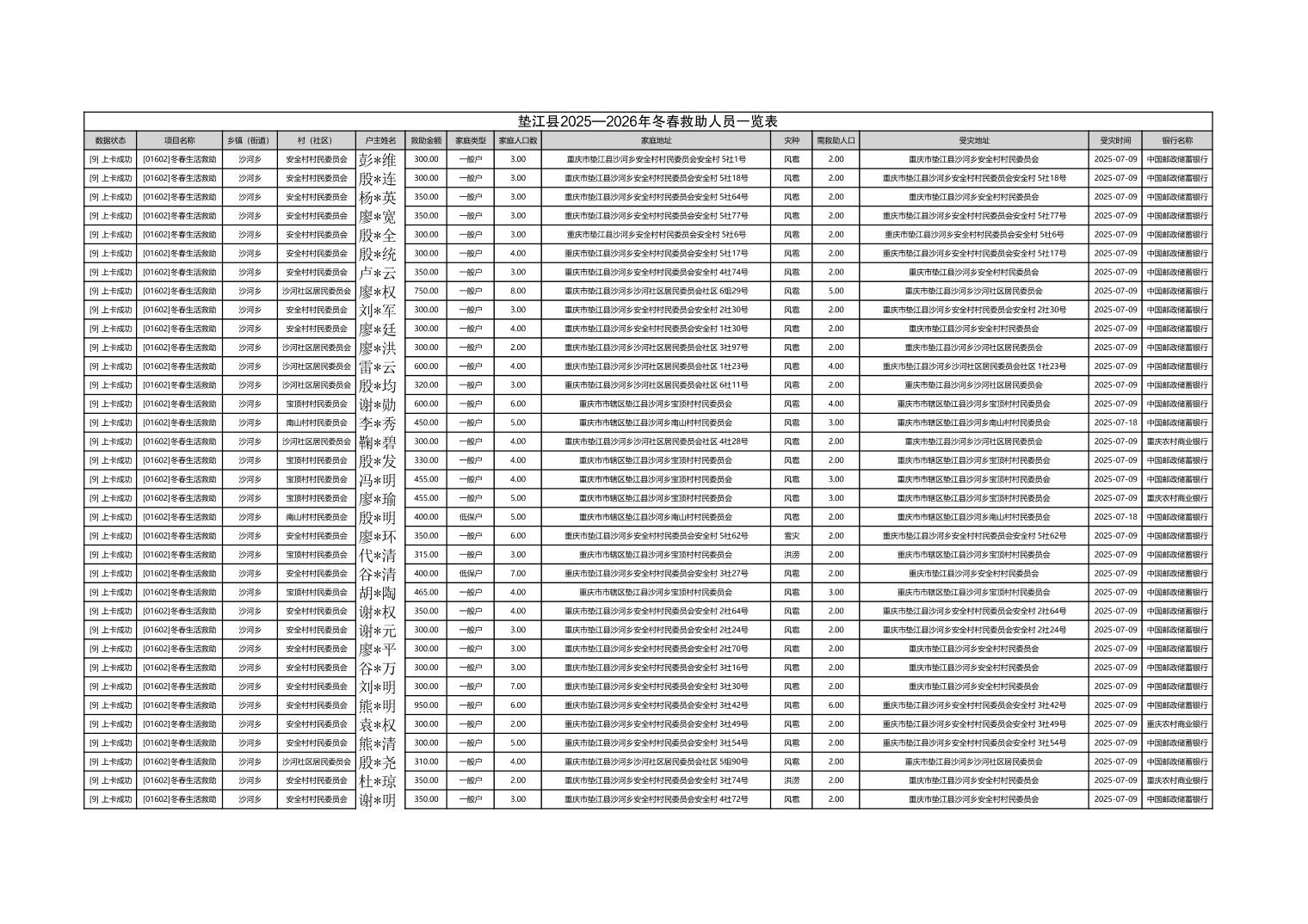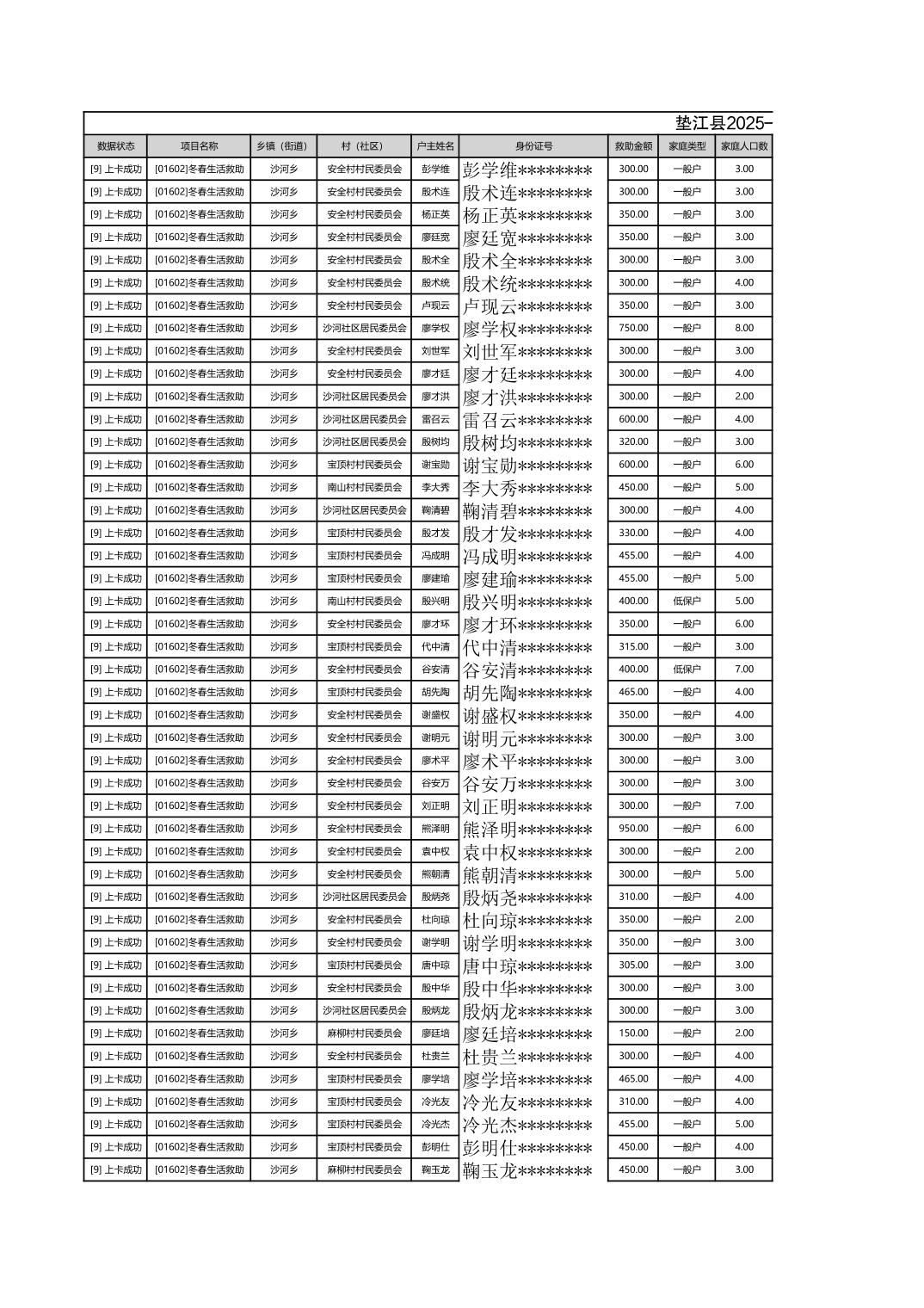 原沙河乡2025—2026年度今冬明春救助对象公示