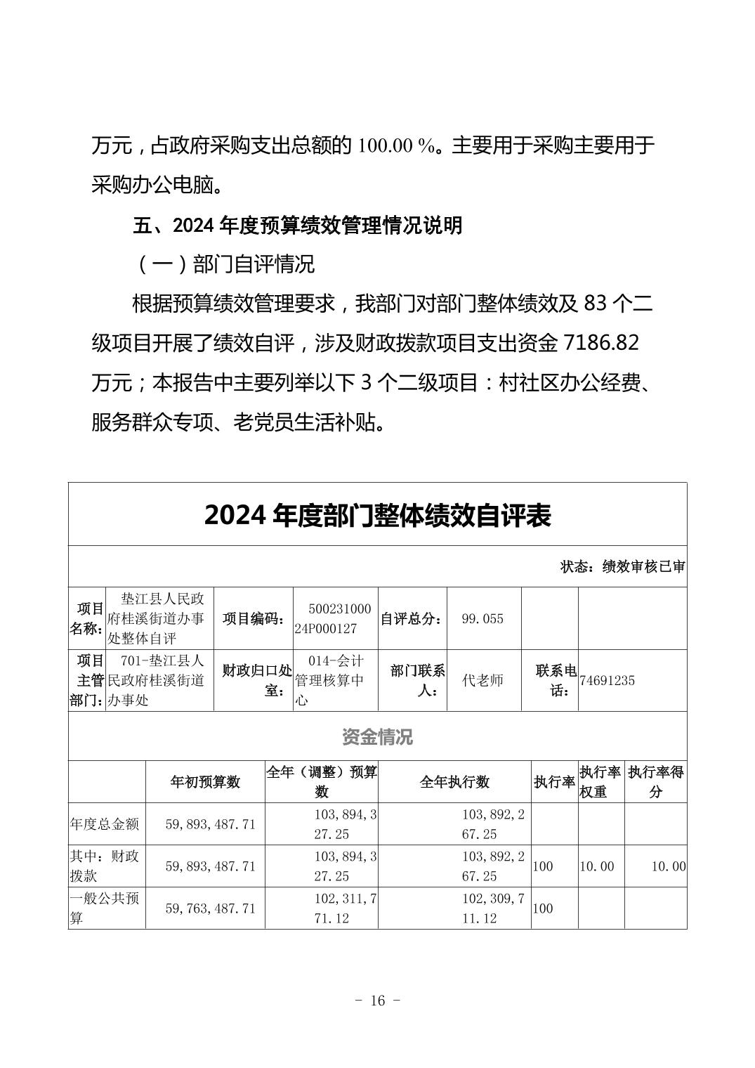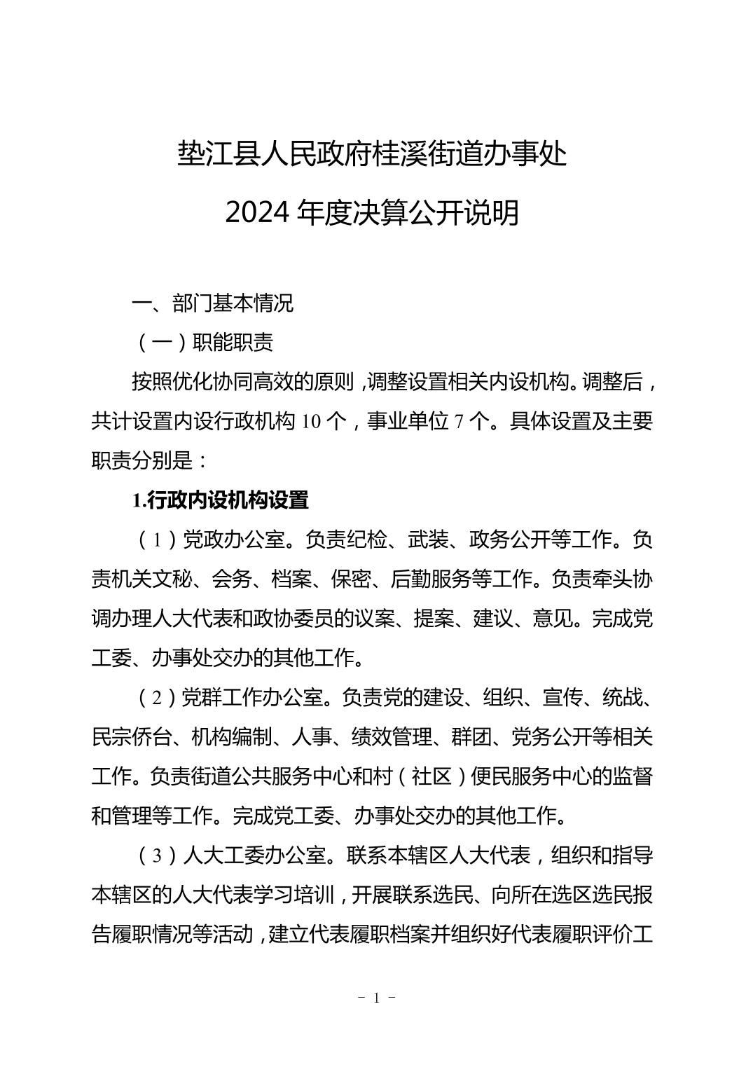 垫江县人民政府桂溪街道办事处2024年度决算公开说明