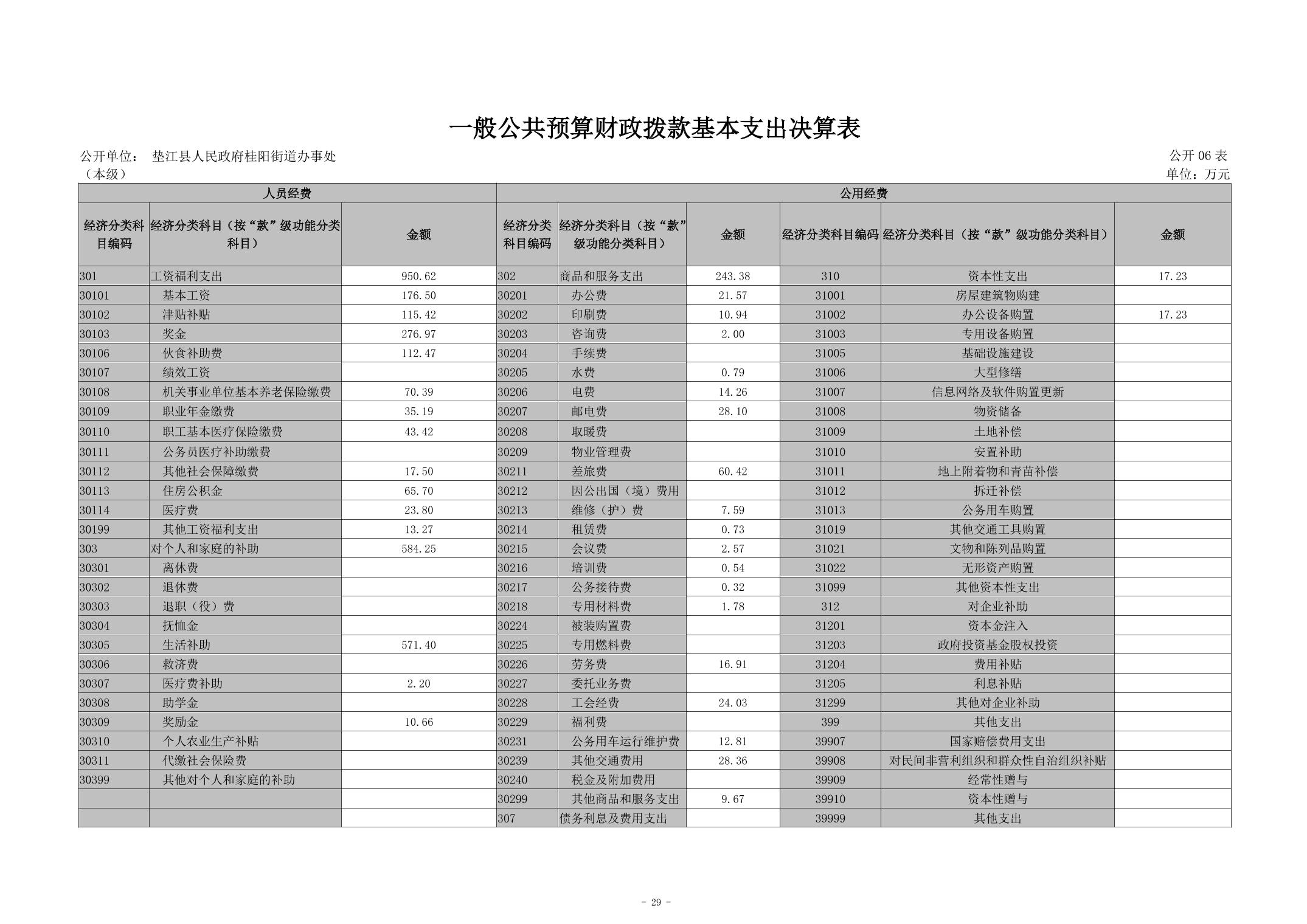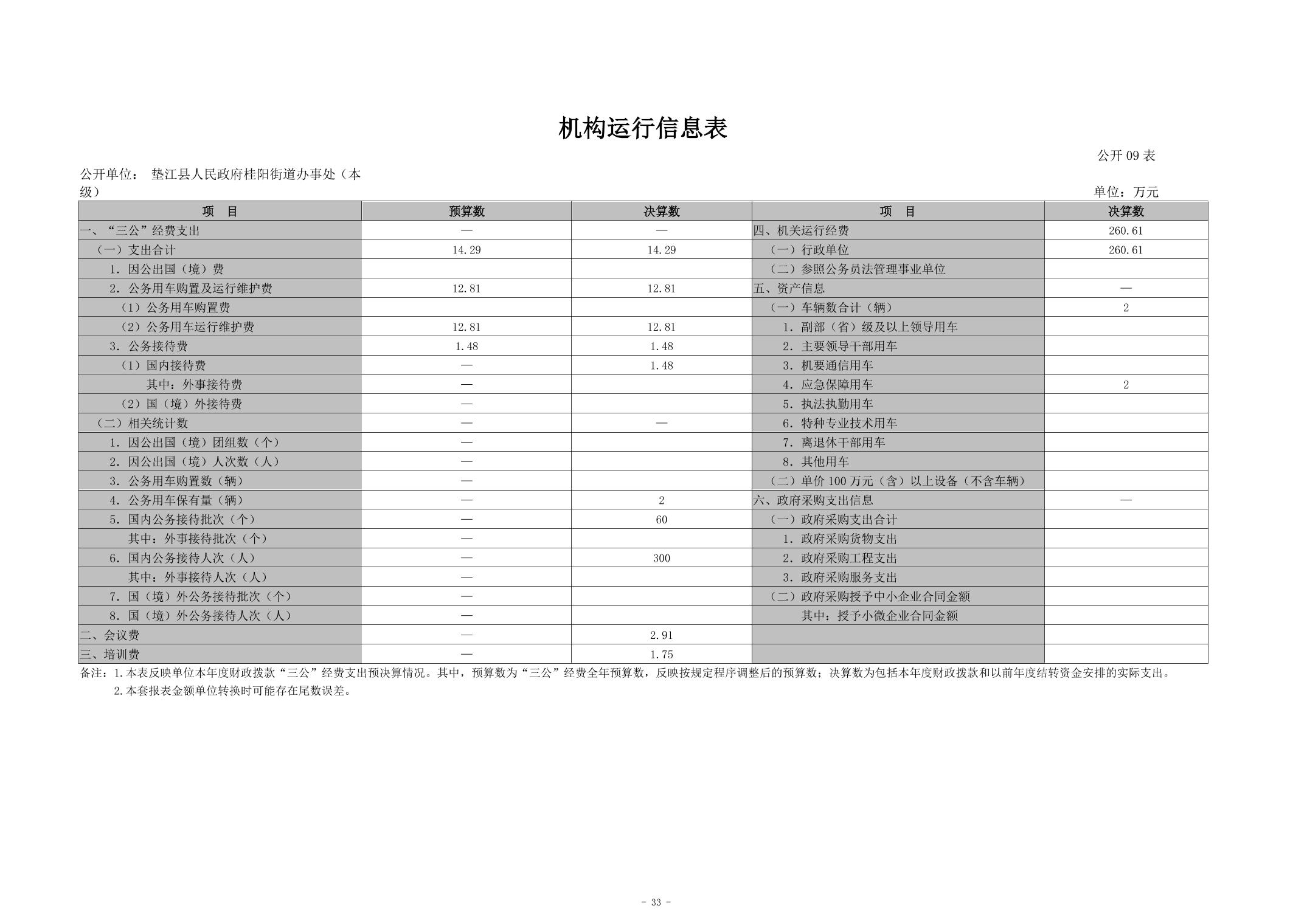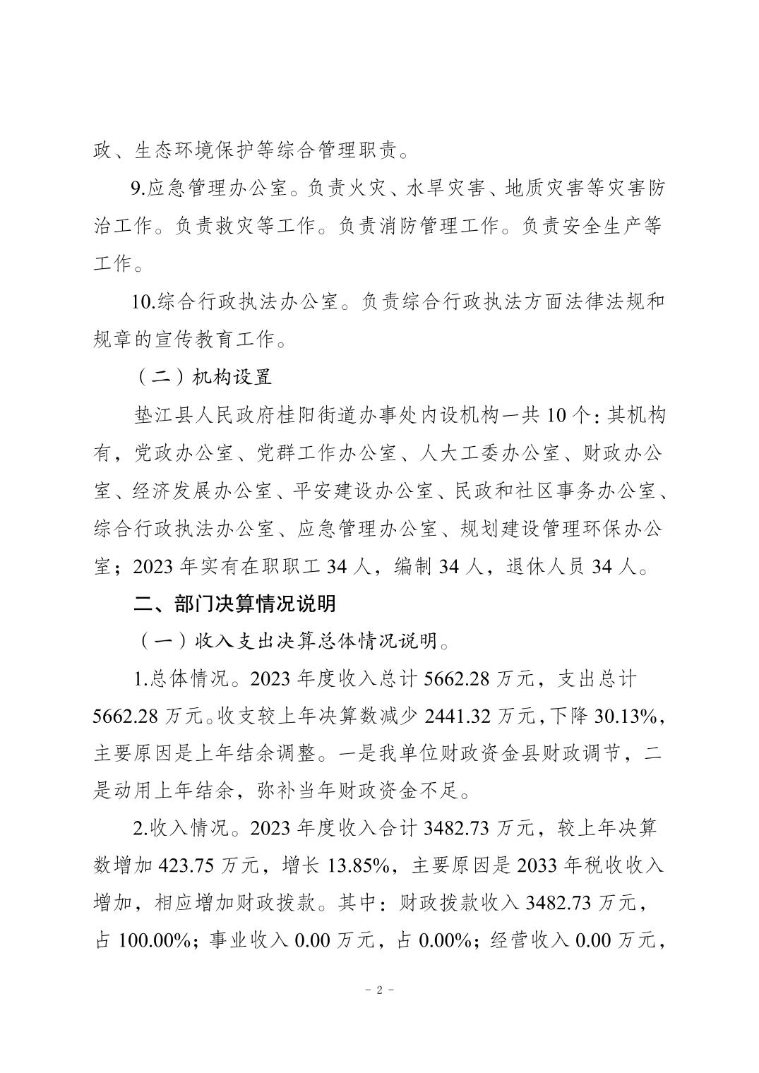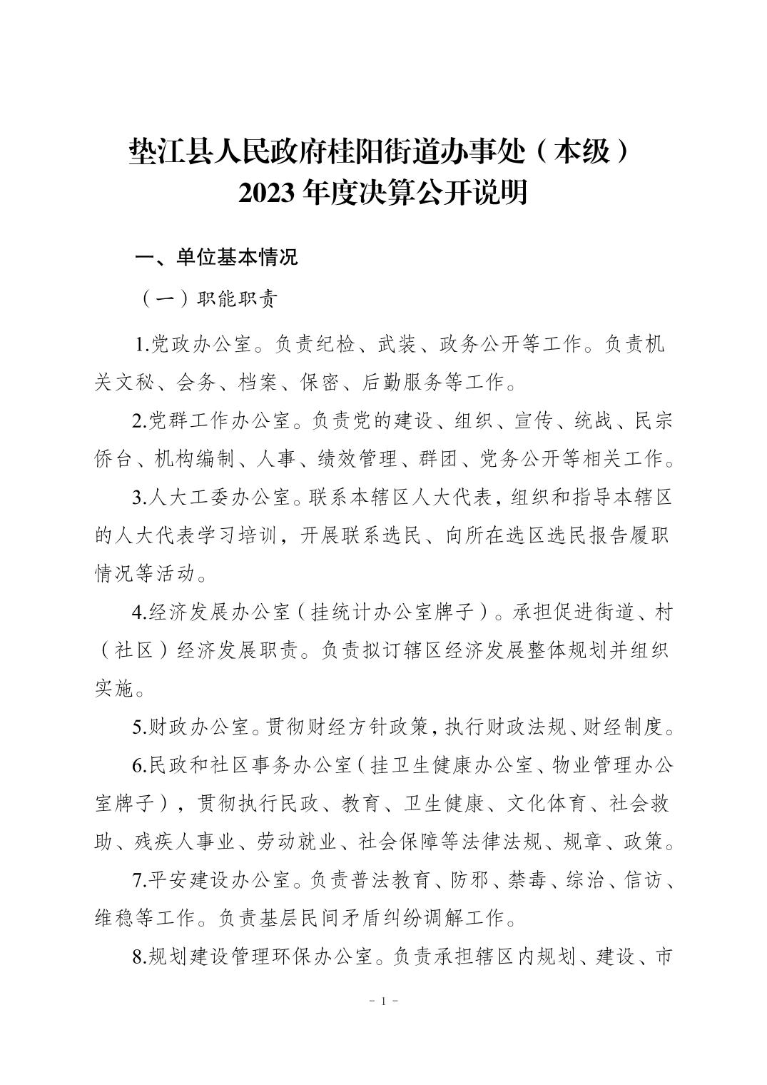 垫江县人民政府桂阳街道办事处(本级)2023年度决算公开说明
