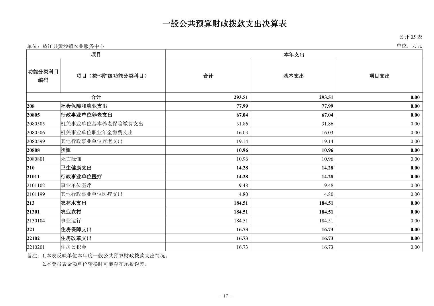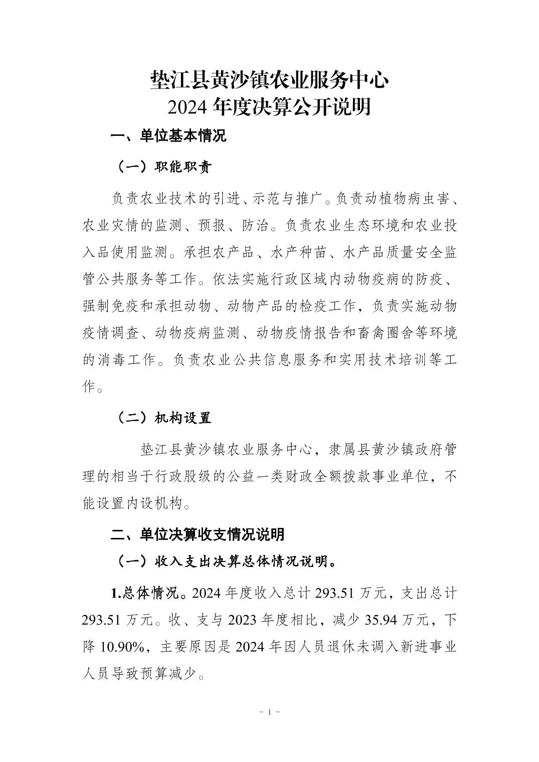 垫江县黄沙镇农业服务中心2024年度决算公开说明