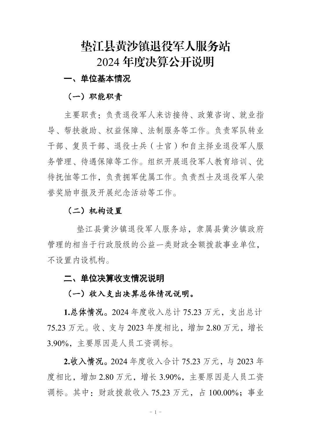 垫江县黄沙镇退役军人服务站2024年度决算公开说明.pdf垫江县黄沙镇退役军人服务站2024年度决算公开说明.docx