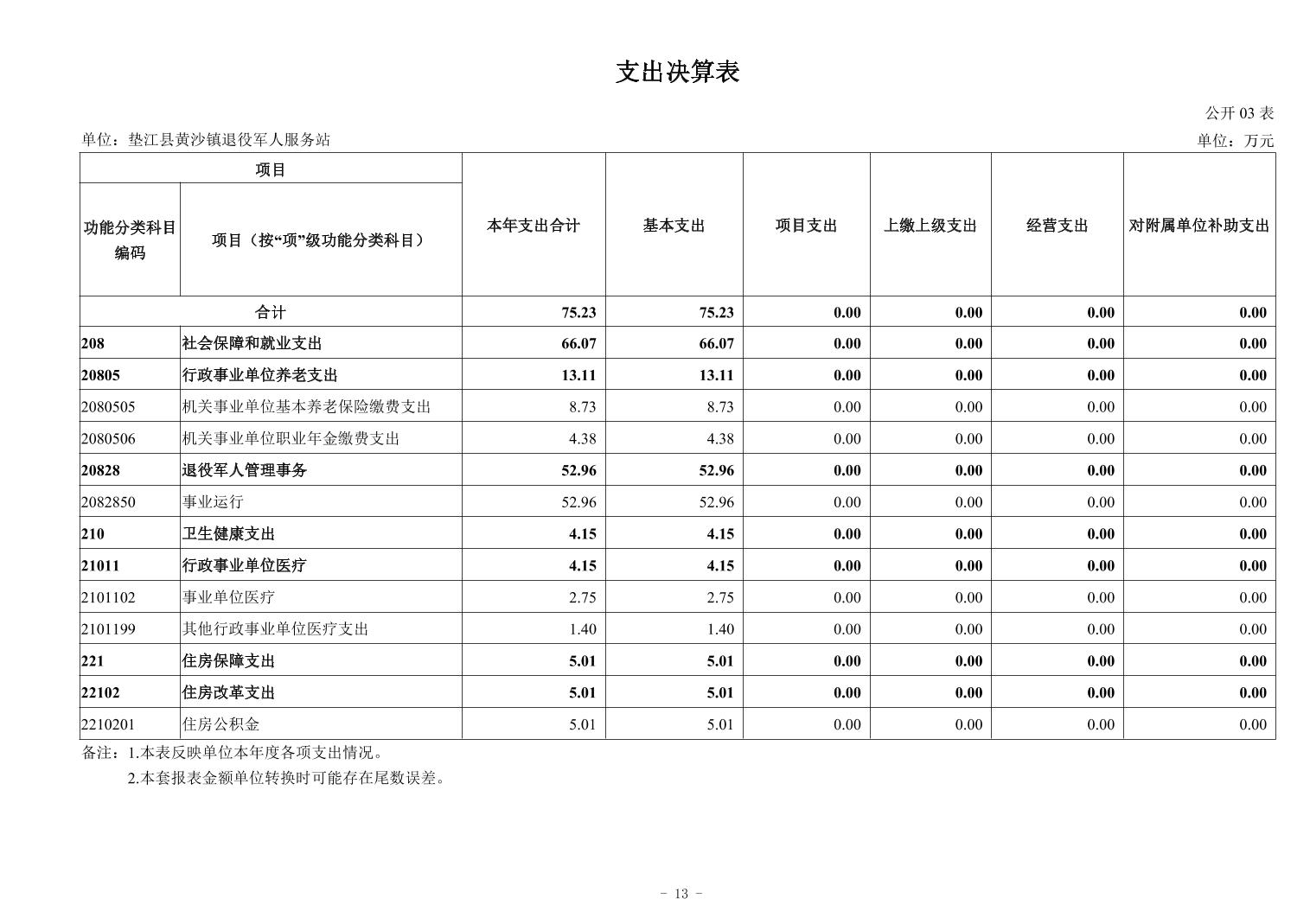 垫江县黄沙镇退役军人服务站2024年度决算公开说明