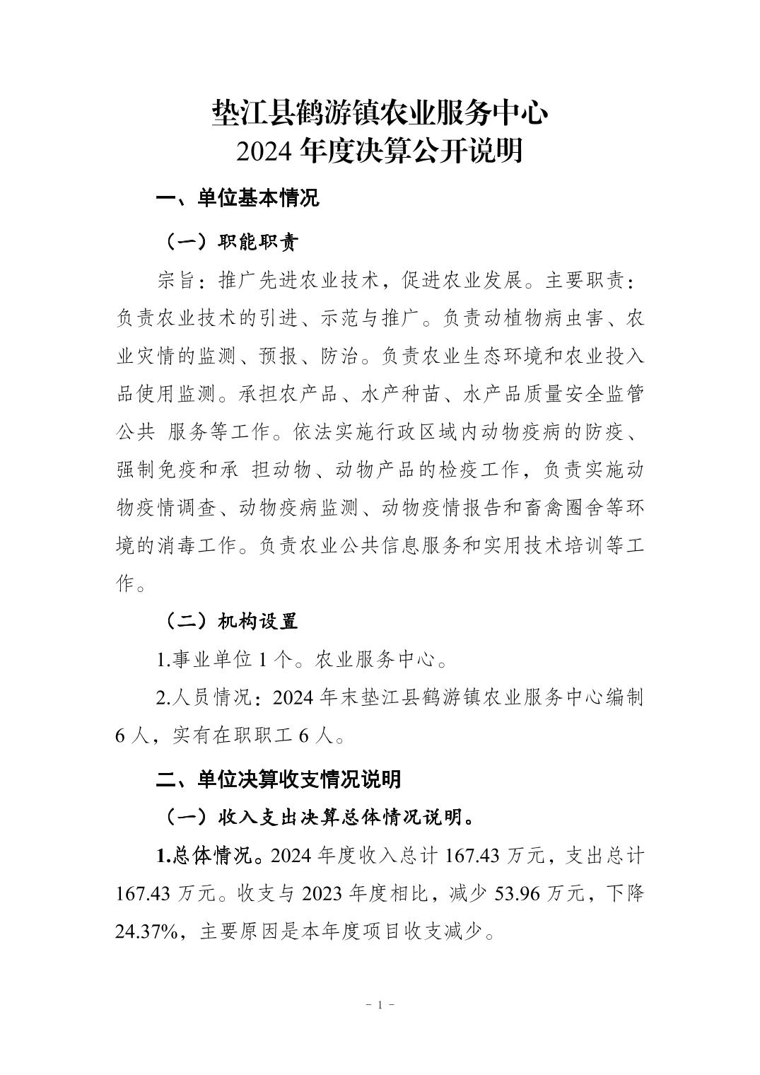 垫江县鹤游镇农业服务中心2024年度决算公开说明.docx垫江县鹤游镇农业服务中心2024年度决算公开说明.pdf