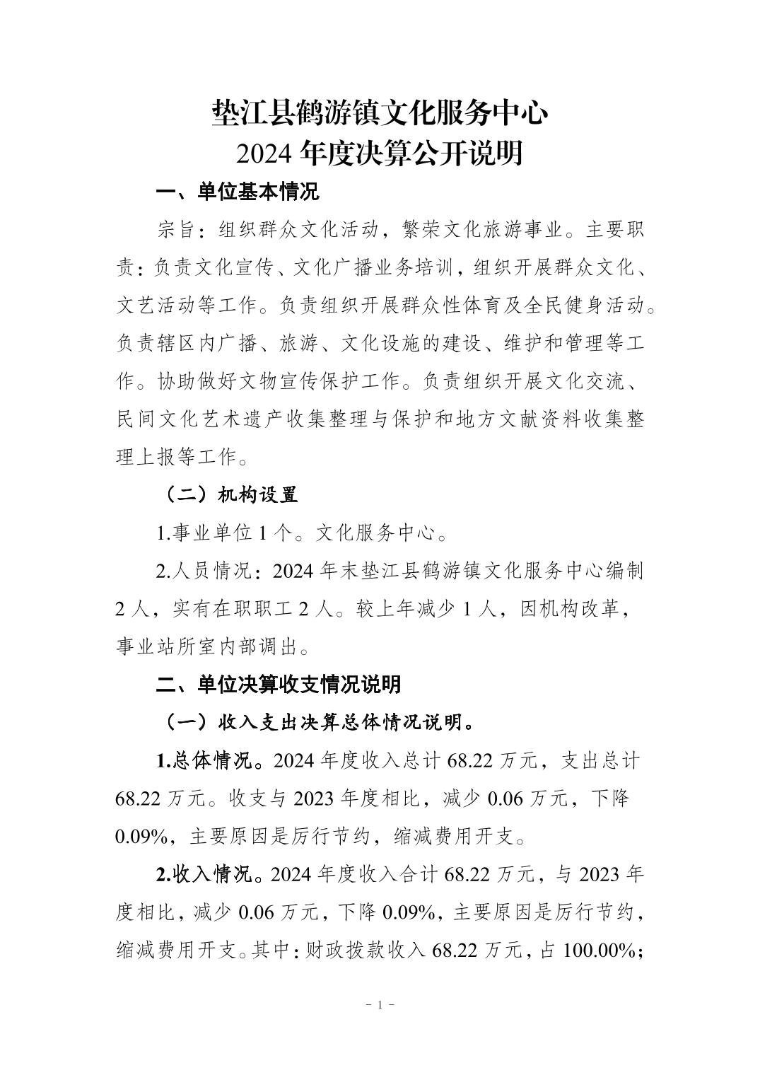 垫江县鹤游镇文化服务中心2024年度决算公开说明.docx垫江县鹤游镇文化服务中心2024年度决算公开说明.pdf