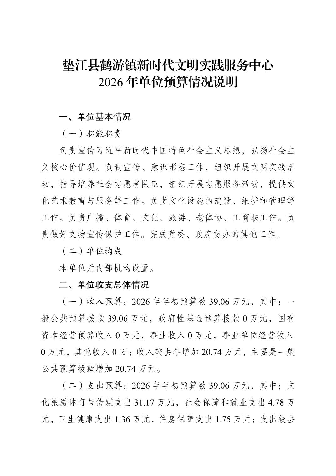 垫江县鹤游镇新时代文明实践服务中心2026年单位预算情况说明.pdf