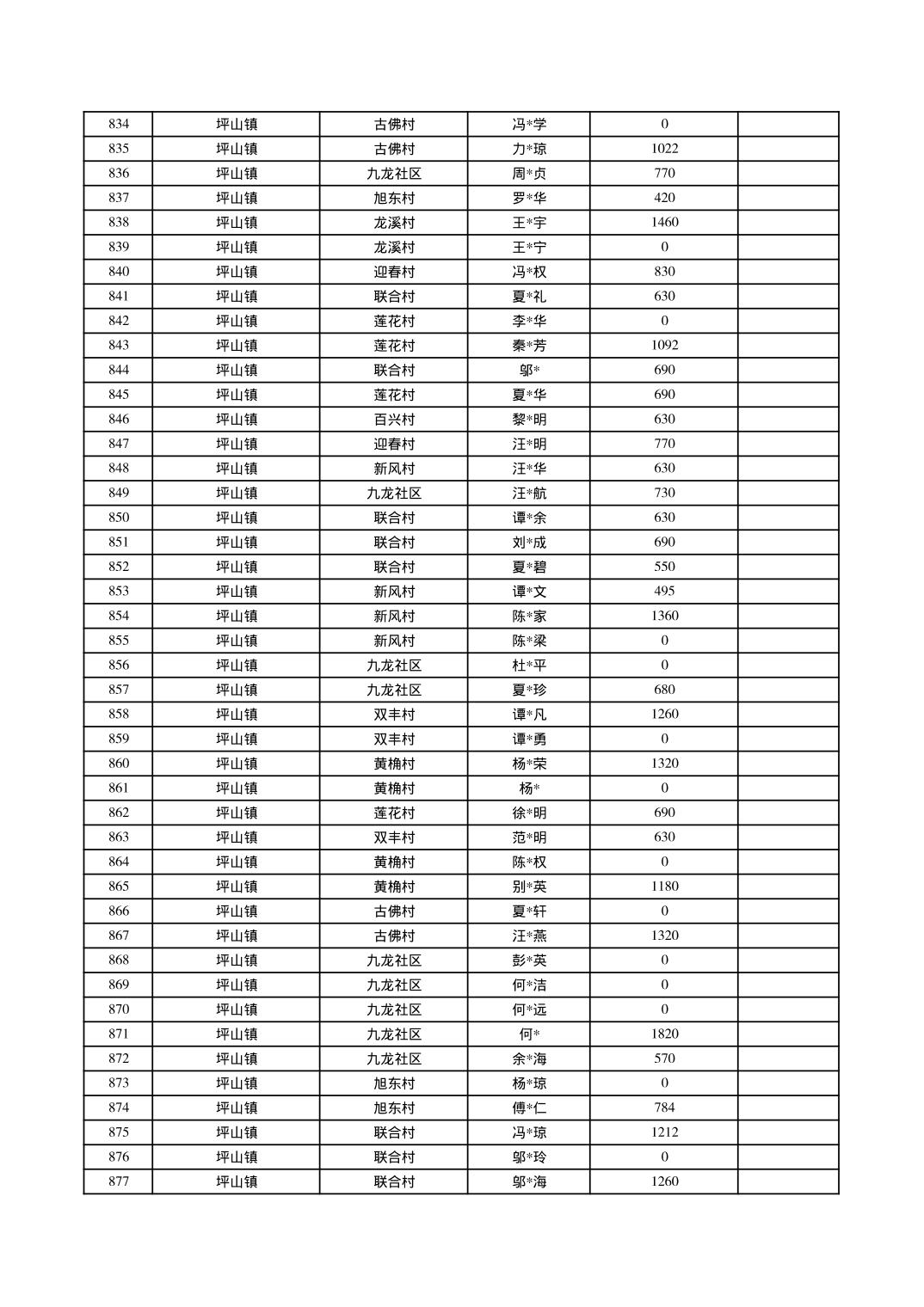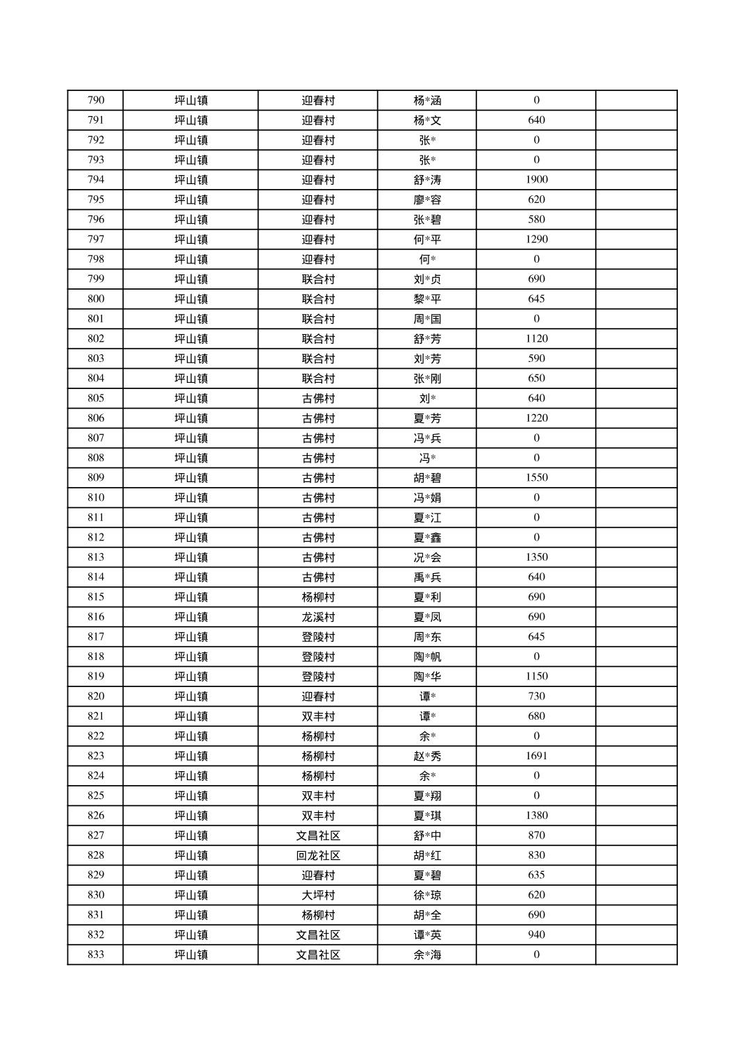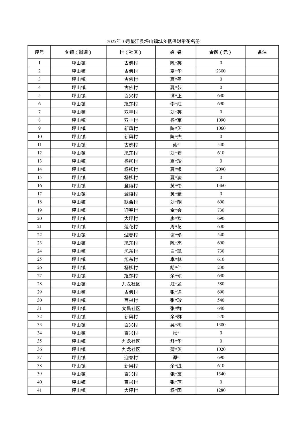 2025年10月垫江县坪山镇城乡低保对象信息公示
