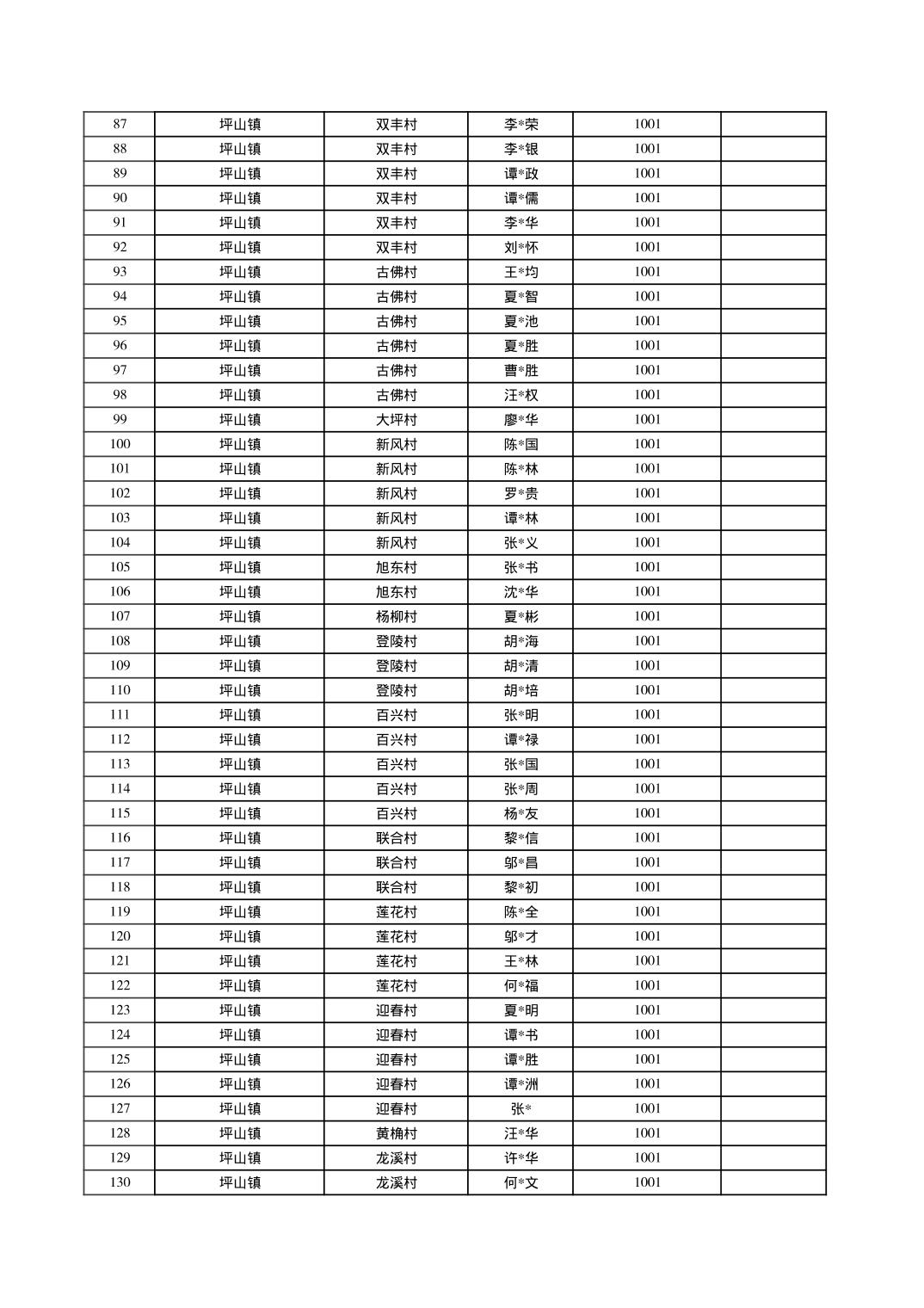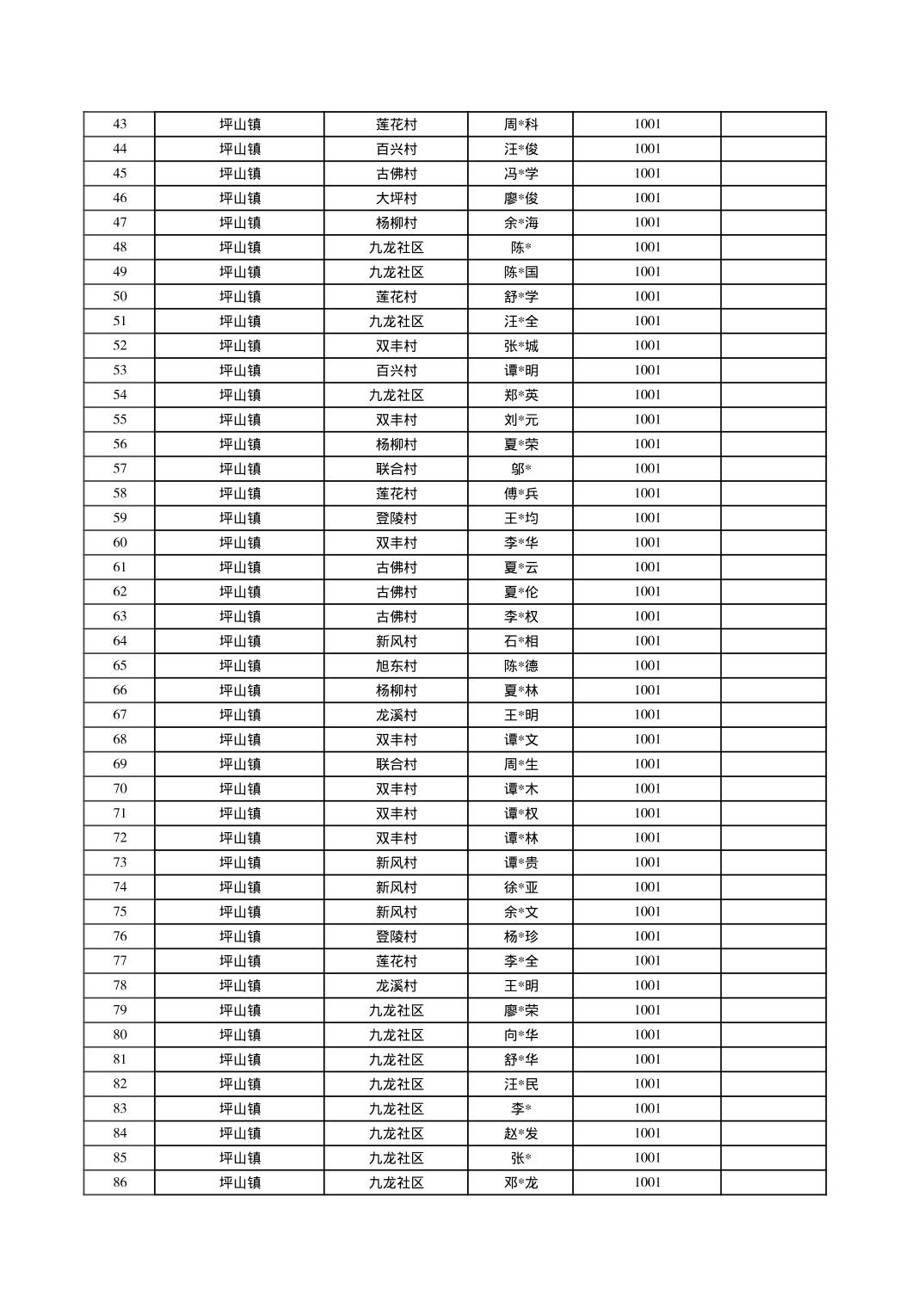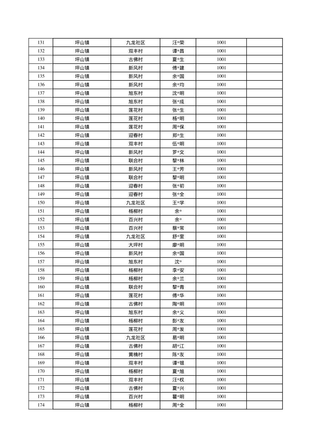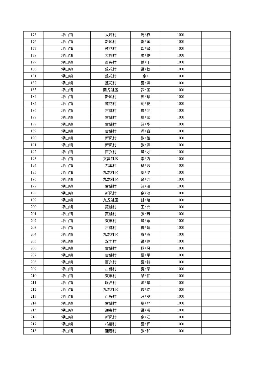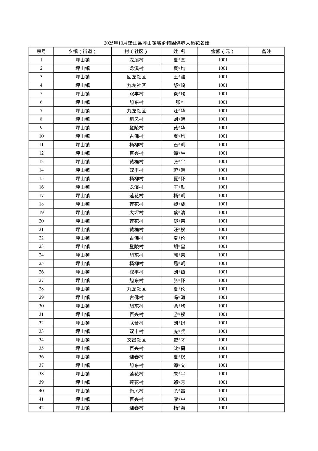2025年10月垫江县坪山镇城乡特困对象信息公示