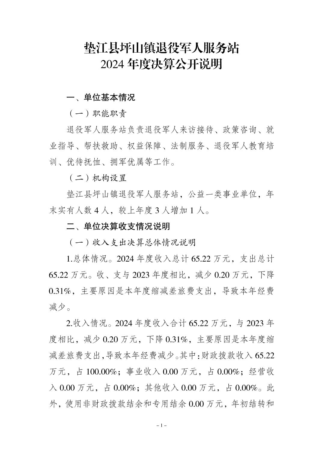 垫江县坪山镇退役军人服务站2024年度决算公开说明.doc垫江县坪山镇退役军人服务站2024年度决算公开说明.pdf