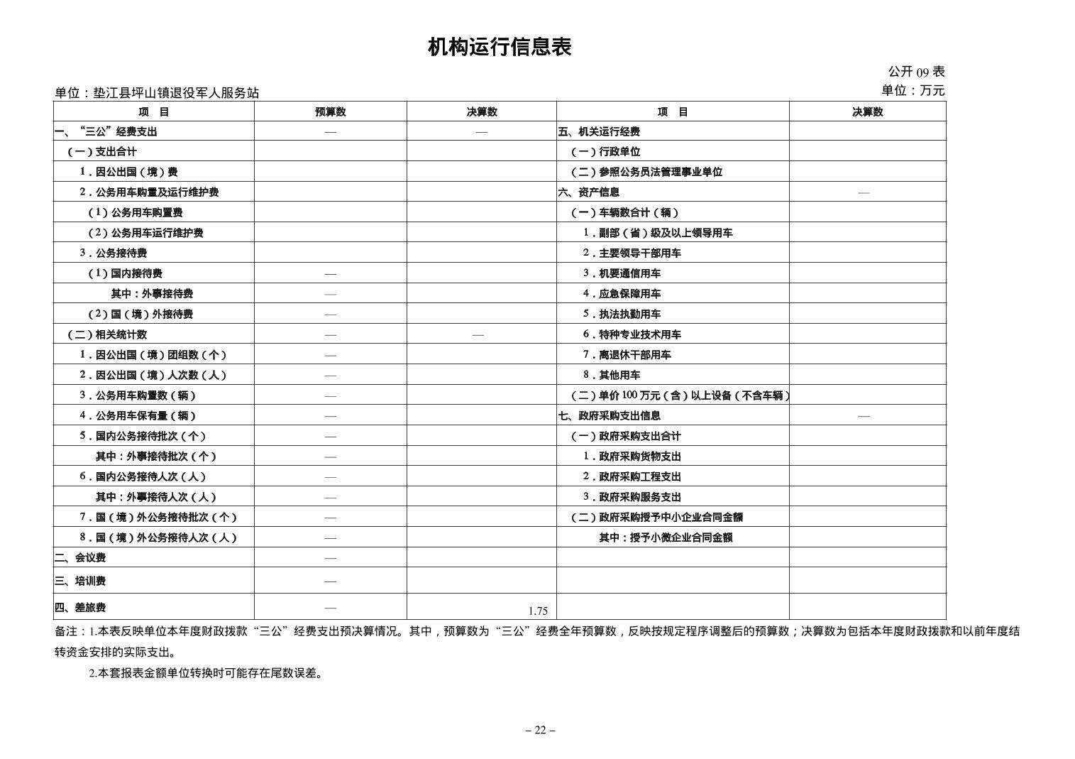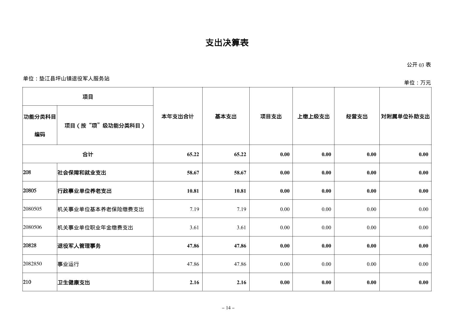 垫江县坪山镇退役军人服务站2024年度决算公开说明